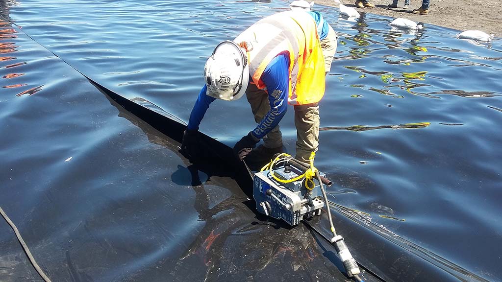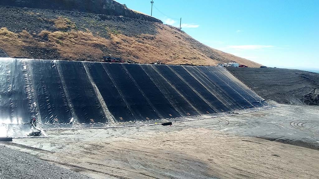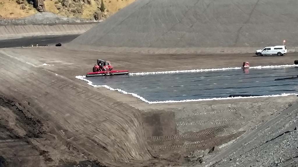 COMANCO Superintendent Martin Calderon and his 10-man crew are currently working on a 2,000,000sf Gyp Stack Expansion project in South East Idaho.  Since the start, they have been fighting with heavy winds up to 20+ mph almost every day. This creates more of a challenge when installing 60mil single-sided smooth HDPE liner on a 1:5 to 1 slope. The liner has been slippery, but the crew is being extra cautious as to avoid any injuries during the installation.