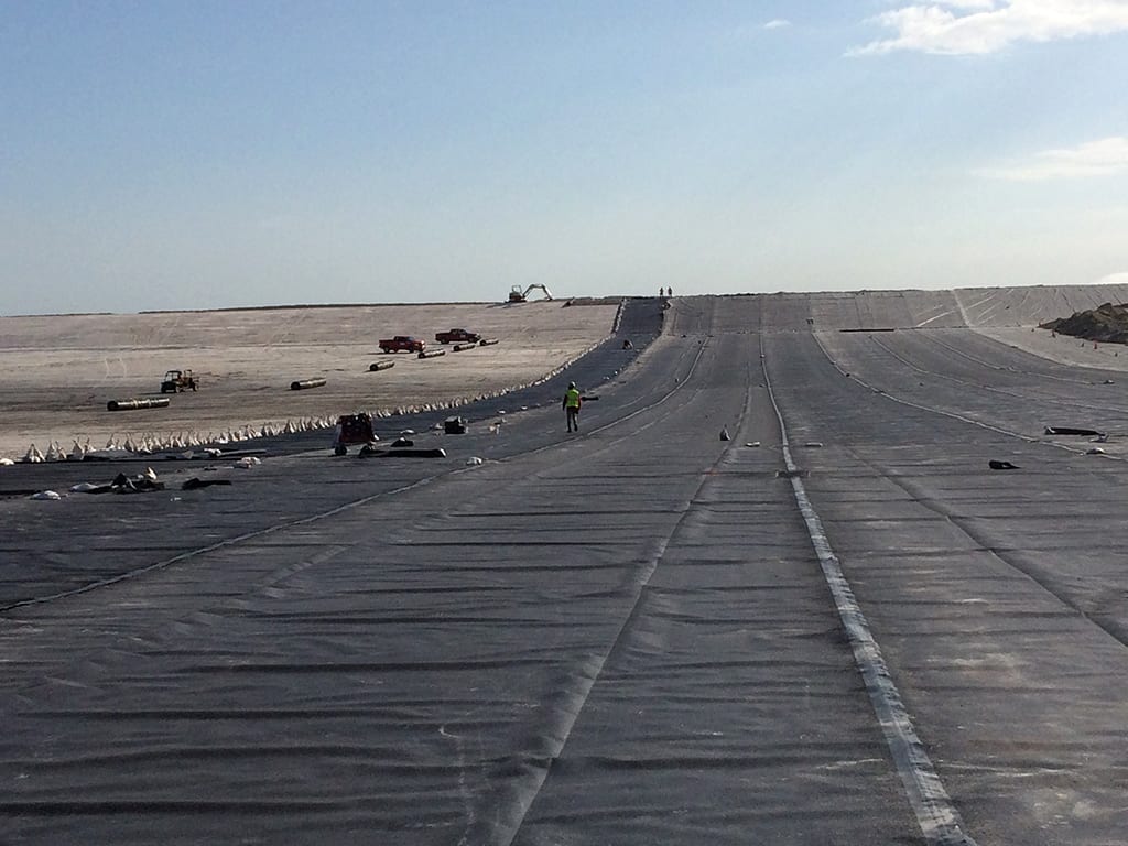 COMANCO has recently restarted a liner installation project at a chemical facility in Central Florida. Superintendent Gerardo Ruiz and the crew are installing 40mil HDPE textured liner along with a geocomposite gas venting system. To-date the crew has installed nearly 1.5 million square feet of HDPE liner. With multiple contractors in the area. COMANCO is focused on maintaining a safe job site by constantly communicating with others. KEEP UP THE GOOD WORK!