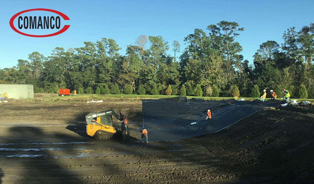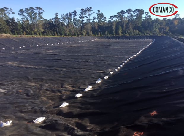 The COMANCO crew, led by Superintendent Gerardo Ruiz, has completed liner installation on the second of three ponds for a North Florida customer.