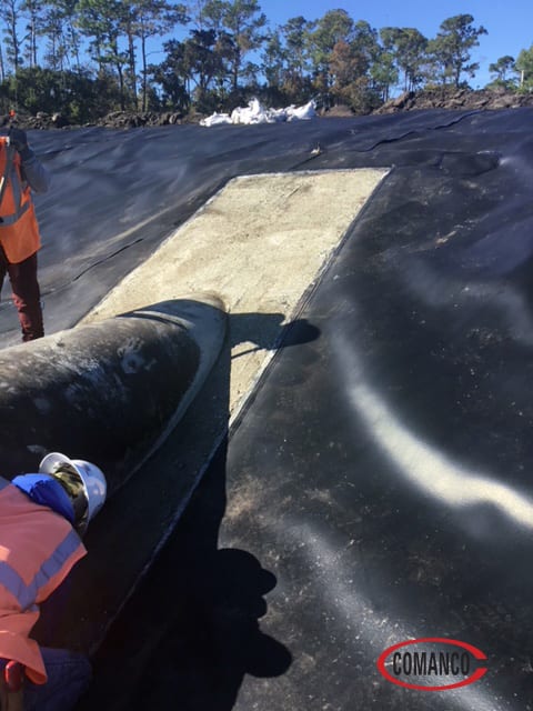 The crew installed 60,000 square feet of HDPE liner and four pipe boots. COMANCO and the customer were extremely satisfied that Gerardo and the crew performed well and safely with no incidents.