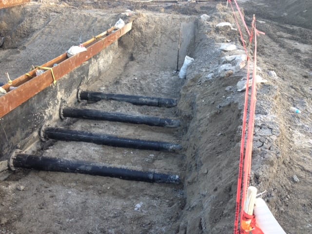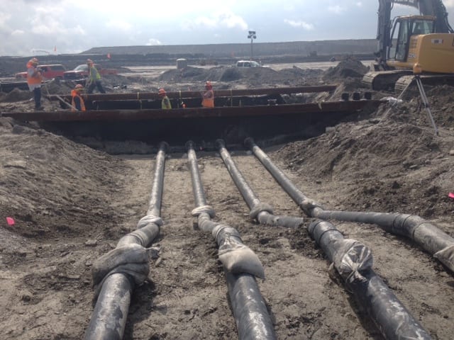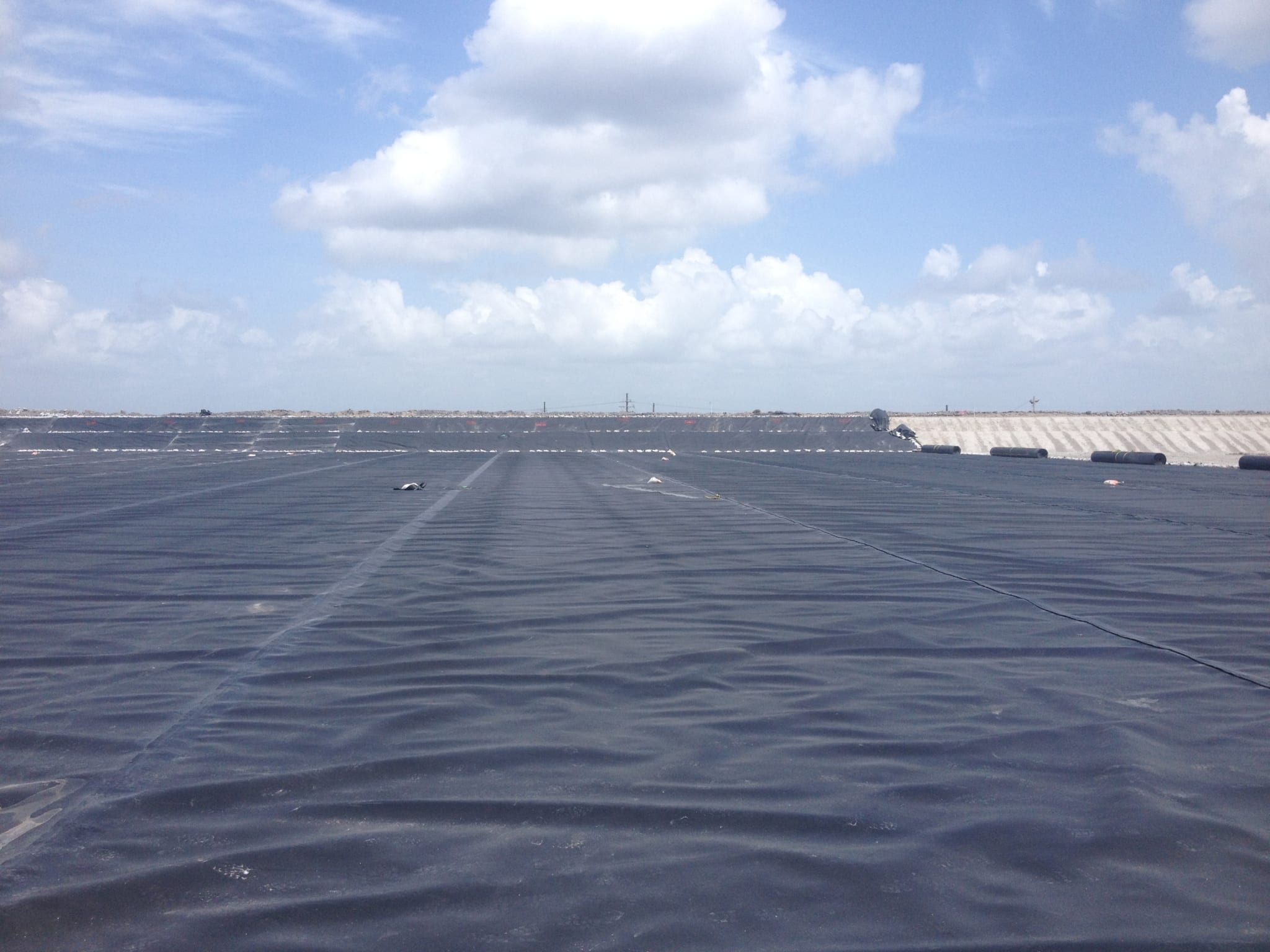 COMANCO Environmental continues to make progress on the gyp stack project on the east coast. Installation totals to date include: -3,000 LF of drainage pipe, – four 48″ sumps, -120,000 SF of geocomposite vent strip underneath liner, – 700,000 SF of 60-mil smooth HDPE liner, – 1,000,000 SF of 60-mil textured HDPE liner, and two seepshield applications. Superintendent Tony Sanchez and the crew continue to work safely and efficiently. Please see a few of the progress photos below.