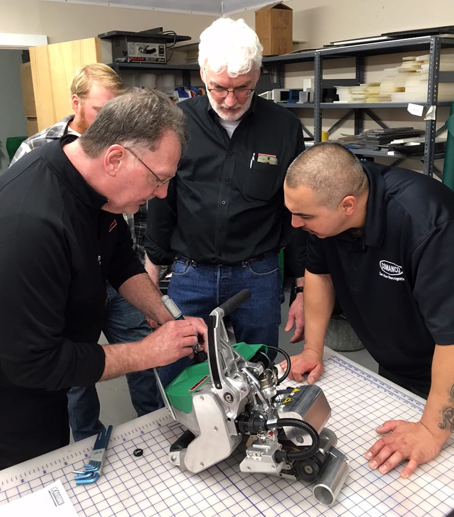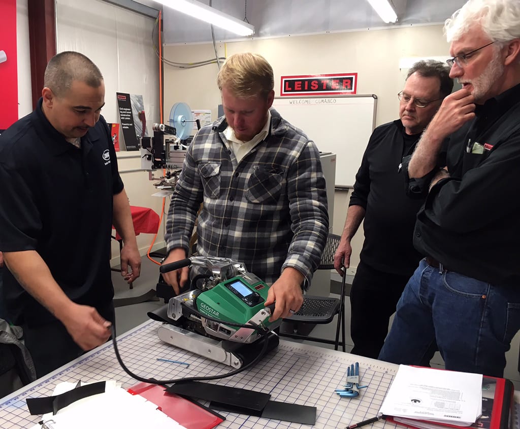 On April 6th, Fleet Supervisor Tony Cole, Liner Equipment Technician Justin Grenke, and Equipment Technicians Sam Smith and Michael Pavlik attended a training class at Leister’s facility in Tiverton, Rhode Island.  The training primarily covered the new Geostar G7 Wedge Welder.  With our recent acquisition, we currently have 12 of these units in our fleet.  The training covered many aspects of these units including safety, tear-down, repair, service, and setup.  This removed much of the apprehensions we all had regarding this equipment that is new to COMANCO.  The staff at Leister did an outstanding job hosting as this exceeded all of our expectations.  This is what our employees told Supervisor Tony Cole about the training experience.