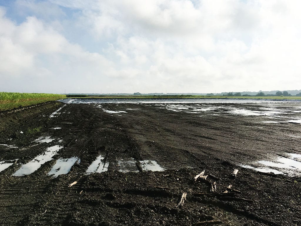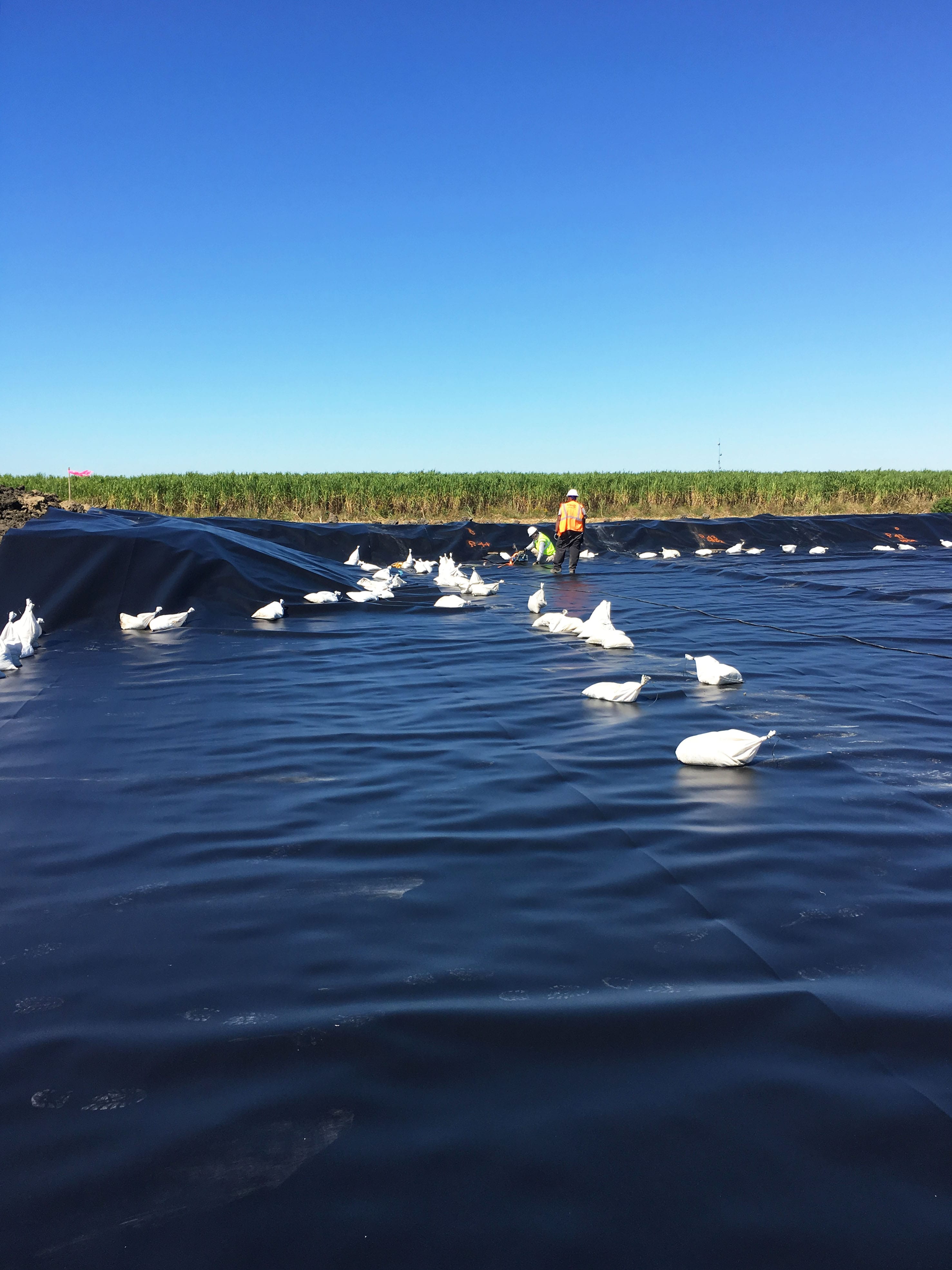A crew led by Superintendent Larry Graham found themselves in the middle of a sugar cane field during harvest in the bayous of south Louisiana. In a rare bagasse storage cell project, COMANCO laid 60-mil smooth liner in the containment cell, installed 40-mil smooth geomembrane in the return ditch, and introduced a few pipe boots to complete the job. Sugar cane, past the quintessential use in coffee, is utilized for paper products, food additives, and can even be burned for clean steam-engine power. This cell will be where processed sugar cane pulp rests until science conceives even more uses!
