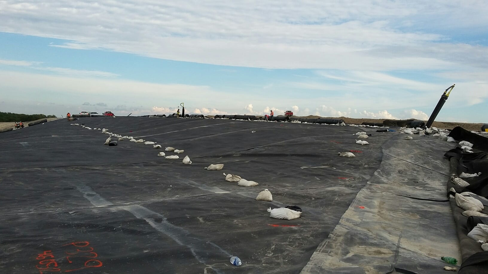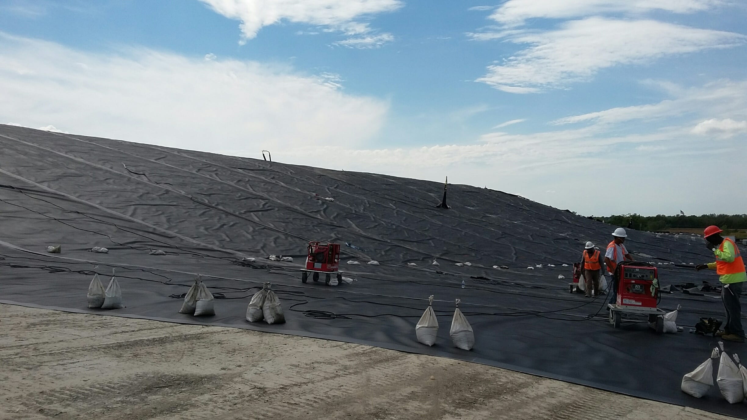 The 12-man COMANCO crew led by Superintendents Jorge Gomez currently finished the deployment and installation for a final closure in the Chicago area. Throughout the landfill closure project approximately 2,683,870 SF of both 40mil LLDPE Double-sided Textured Geomembrane liner and Double-sided Geocomposite. Over 250 pipe boot penetrations were also installed for this closure. The crew did an outstanding job and completed installation of the closure safely, in spite of the constant high winds, high temperatures, and rain delays they faced on a weekly basis.