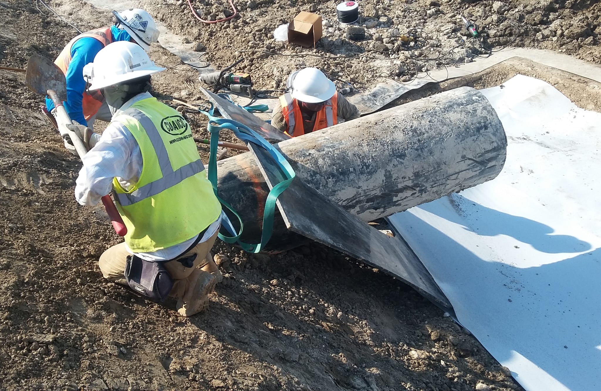 Superintendent Martin Calderon and his crew of three are finishing up their two-day job at a plant in South Louisiana. This crew was asked to tie in a 24” pipe and then line the area surrounding it as a temporary solution until the next phase of work begins. At COMANCO, we are more than equipped to do permanent jobs but are just as prepared to handle the temporary solutions to meet any of our customer’s needs.