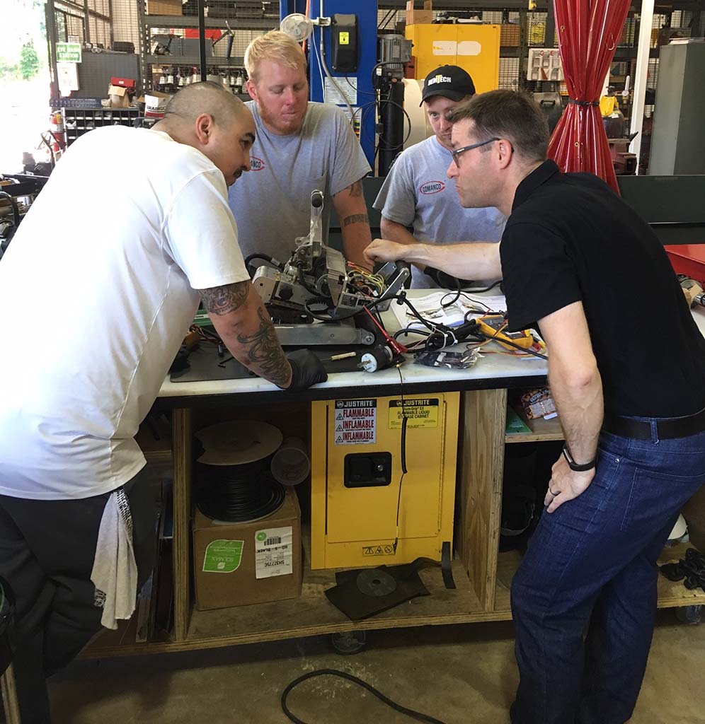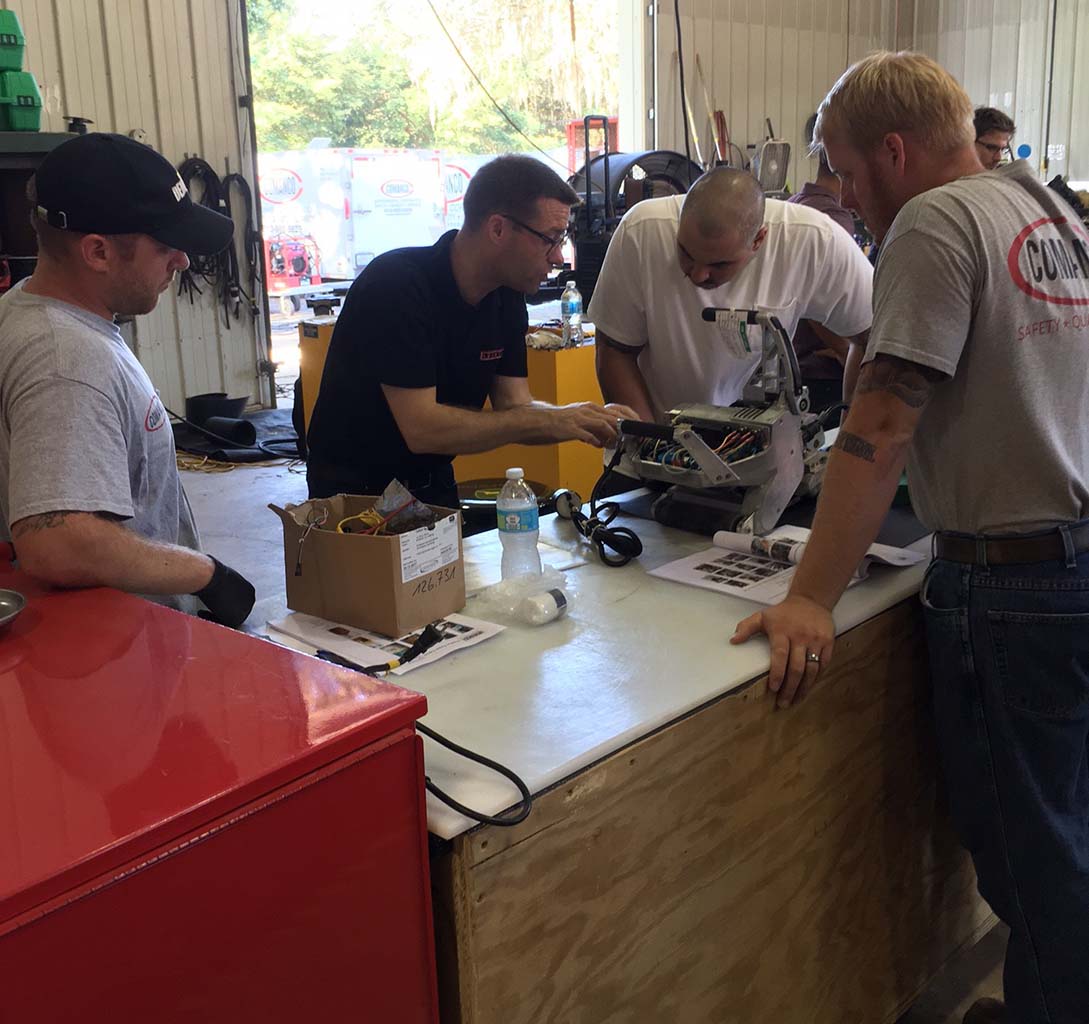 Through our partnership with Leister, COMANCO hosted an intensive training session on the Leister GEOSTAR G7 wedge welders. Worldwide Repair & Service Engineer Daniel Barmet traveled from Leister’s Switzerland office to share his wealth of knowledge of the units with our Fleet technicians, while Field Sales Engineer Paul Maniscalco worked with associates from our Operations Divison. It is rare to find manufacturers who are willing to share such in-depth knowledge as Leister does. This type of customer service provides great value, especially since COMANCO services our own equipment. The COMANCO Fleet department’s expectation is that it meets or exceeds “like new” performance when it goes to a job site.