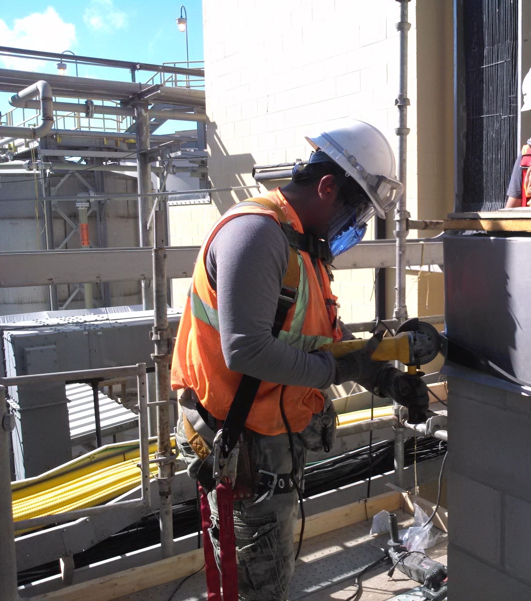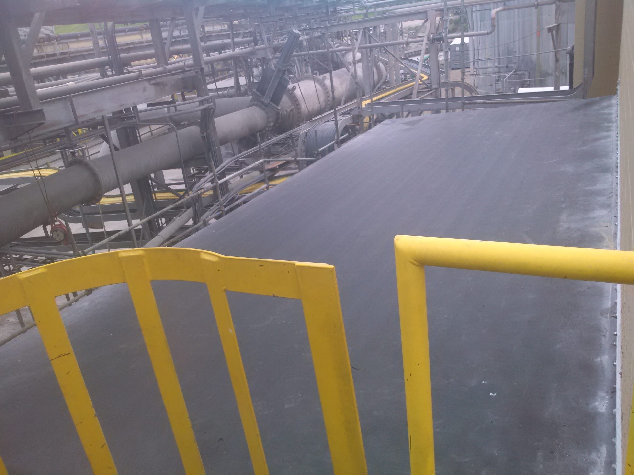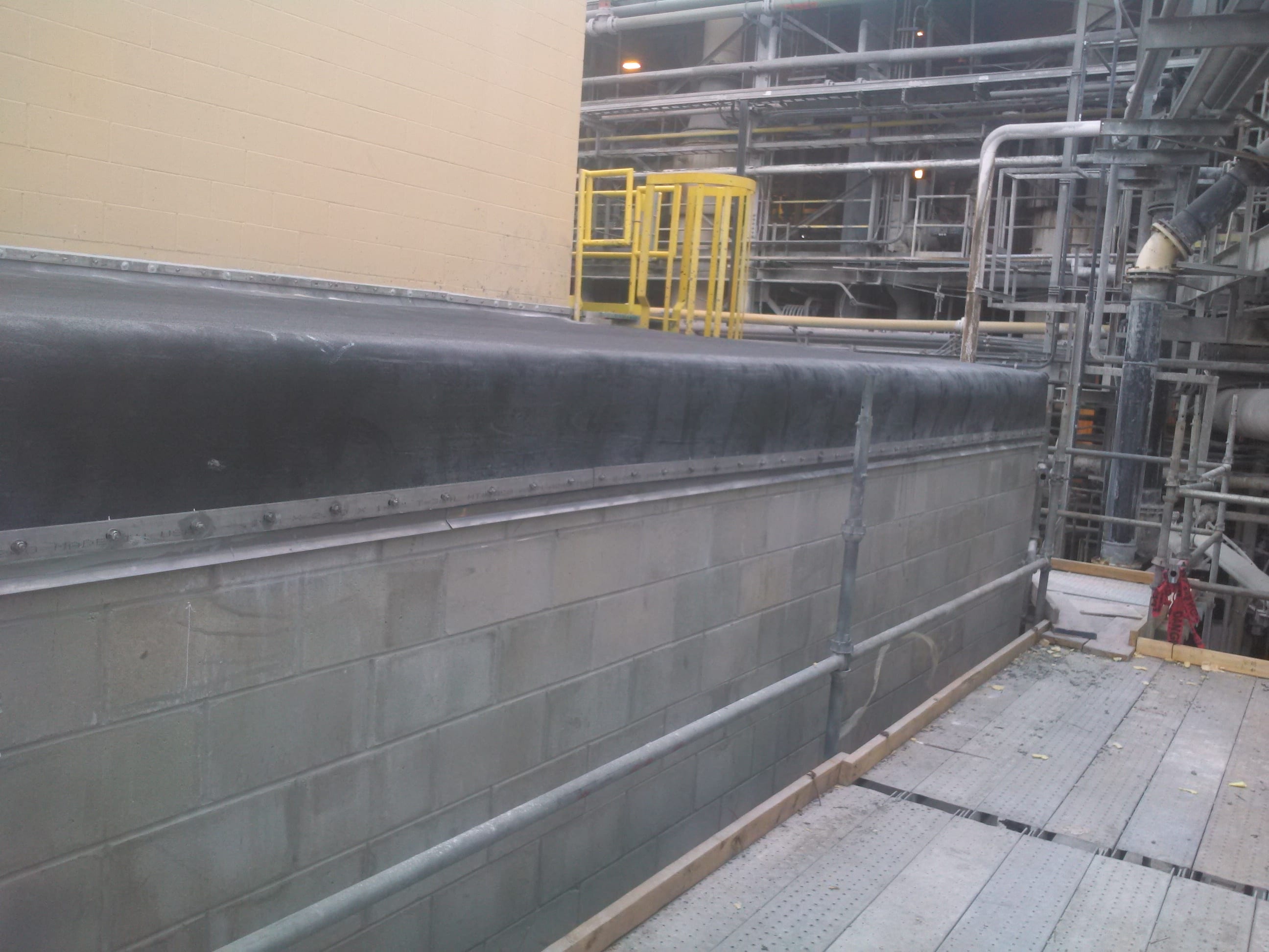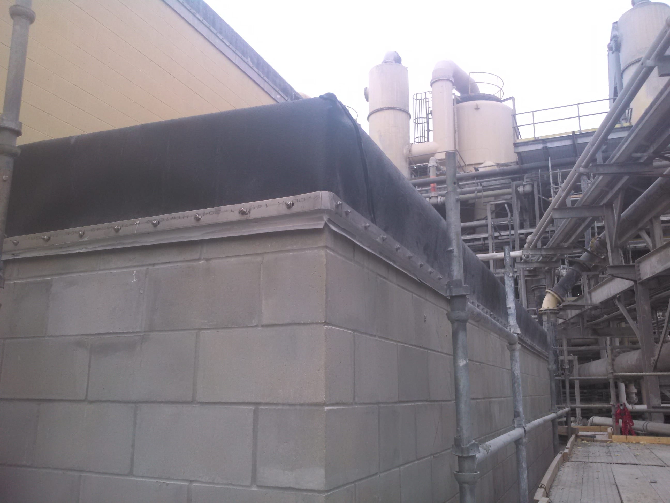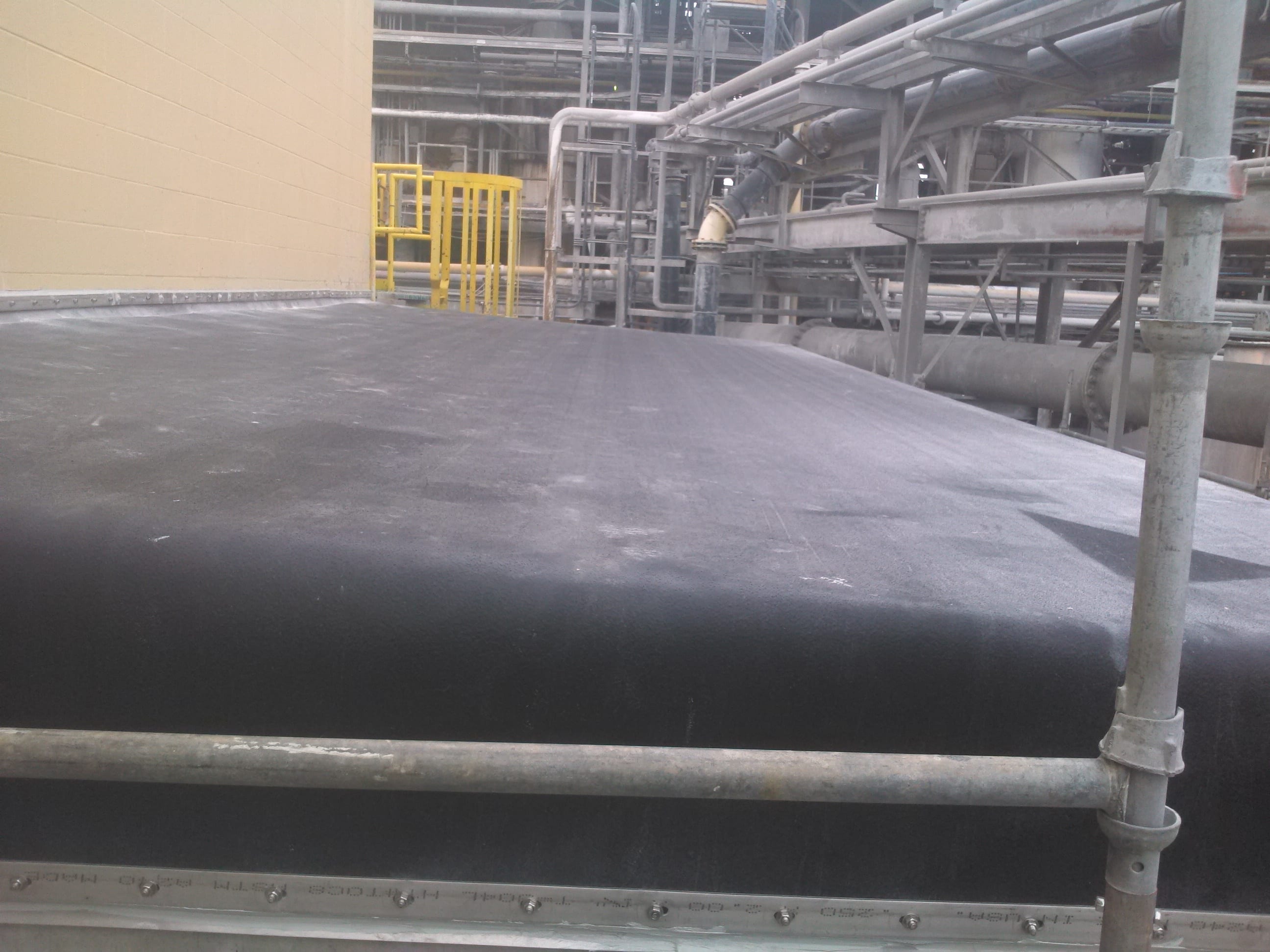 COMANCO has installed another roof liner, utilizing 60mil HDPE textured geomembrane to provide a water tight, chemical resistant roof for a new electrical building in a chemical plant in Central Florida. The crew, led by Gerardo Ruiz, worked from scaffolding to line the roof and secured the material to the building using stainless steel batten bar.