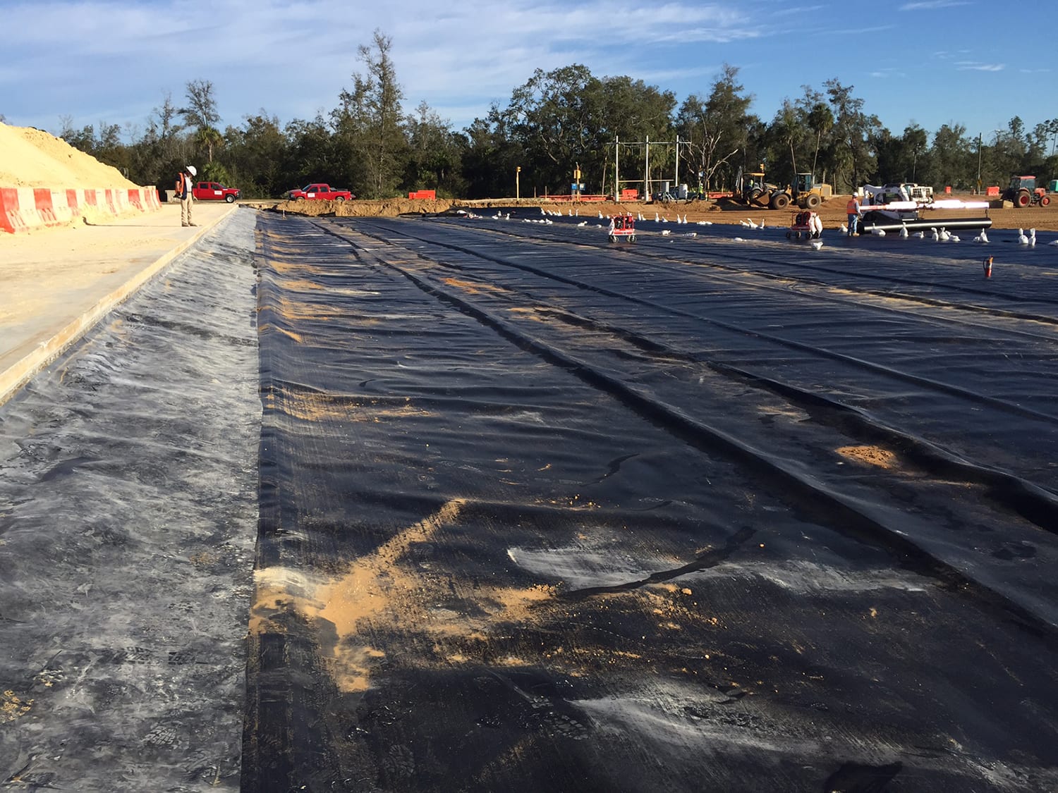 The 5-man COMANCO crew led by Superintendent Jorge Gomez, recently mobilized for a second time to start the liner and batten bar installation portion a project in Crystal River, FL. This project consists of installing nearly 286,000 SF of 60 Mil HDPE Smooth Geomembrane and 280 LF of batten bar. The crew is staying focused and working safely as the project progresses.