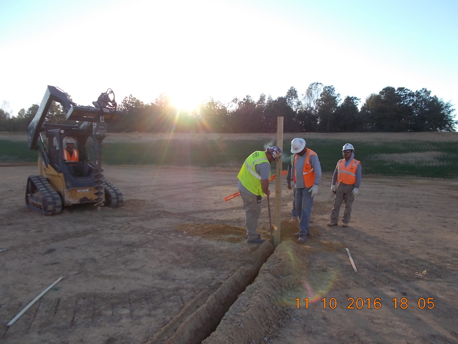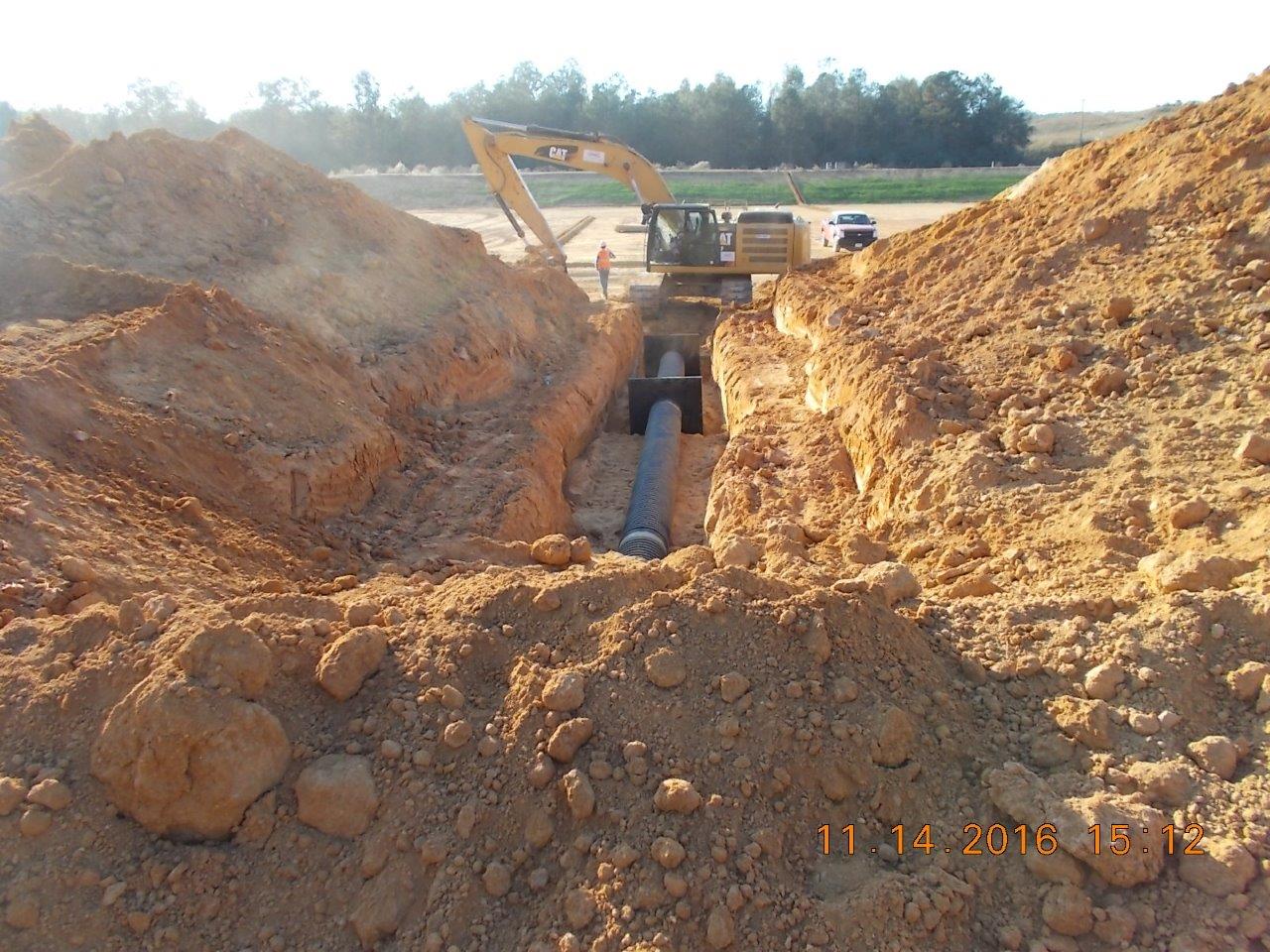 A thirteen-man COMANCO crew led by Supervisor Matt Carroll continues to make headway on a Landfill Storm Water Improvements project in Southern Alabama. Recently, they started installing a storm water pond baffle system. This system will have 262 marine panels and uprights that will be secured with 3,668 stainless steel lag bolts. They are also in the process of installing 18” Anti-Seep Collars on storm water pond outlet pipes.