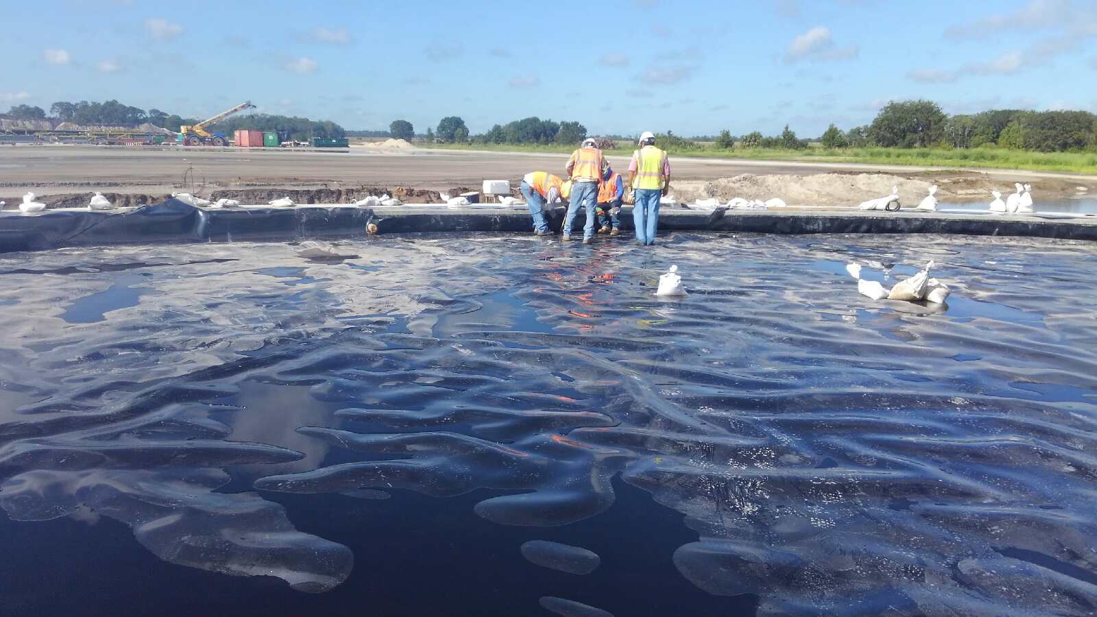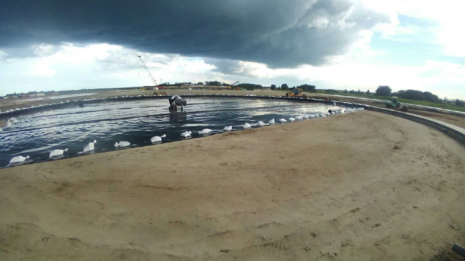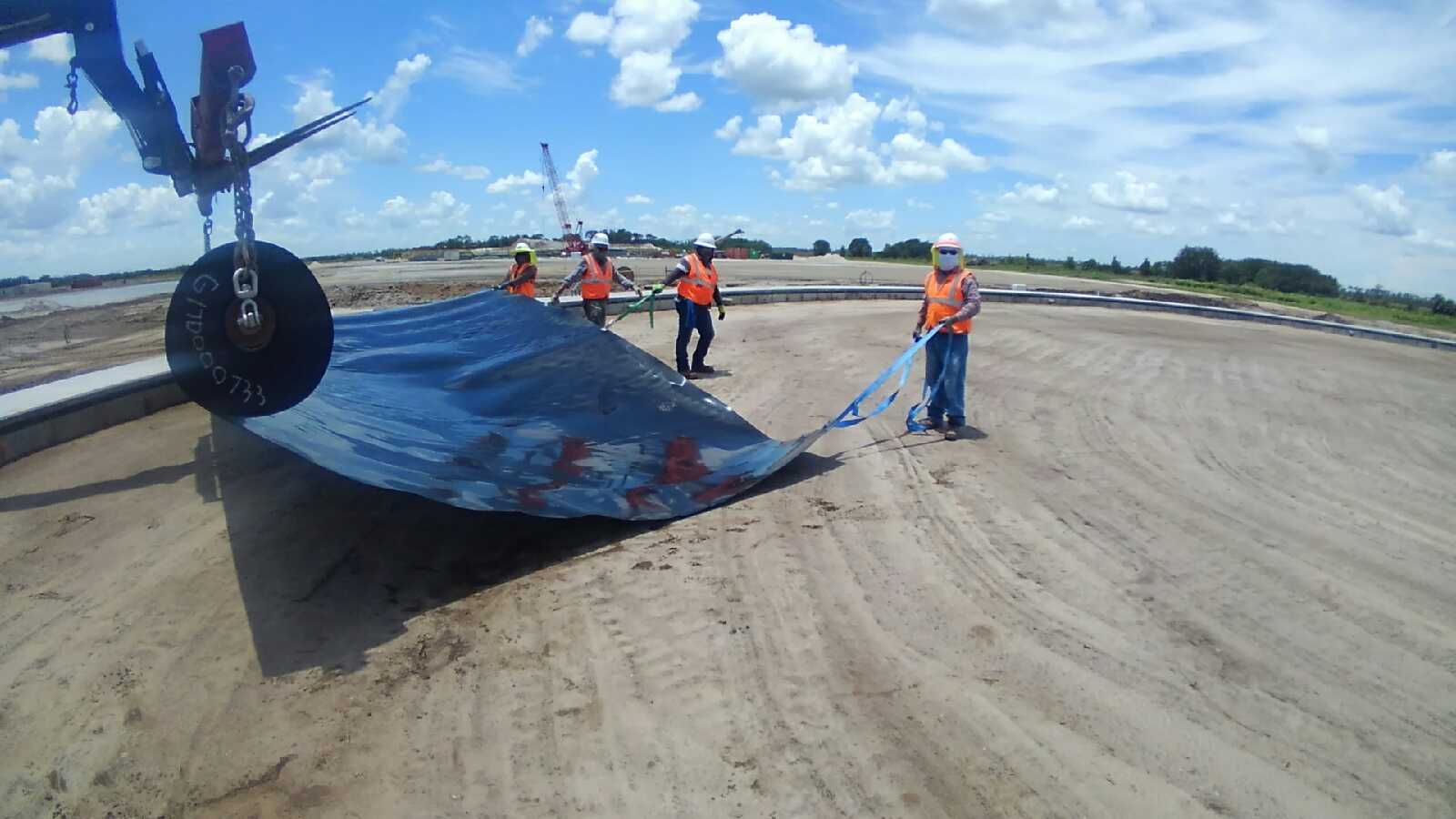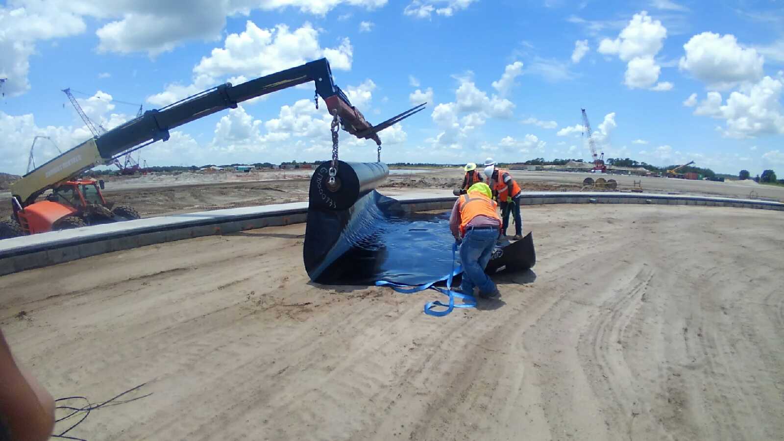 COMANCO Environmental has completed a tank liner containment project in Vero Beach, FL. COMANCO was contracted to supply and install a smooth 80-mil HDPE geomembrane around a concrete ring wall inside a new tank being constructed. An HDPE embed material was formed in with the ring wall prior to concrete being poured. This enabled the liner to be secured to the structure with an extrusion weld. Approximately, 14,000 SF of liner was installed with 400 LF of extrusion weld. This marks another safe, quality project completed by Supervisor, Gerardo Ruiz and crew.