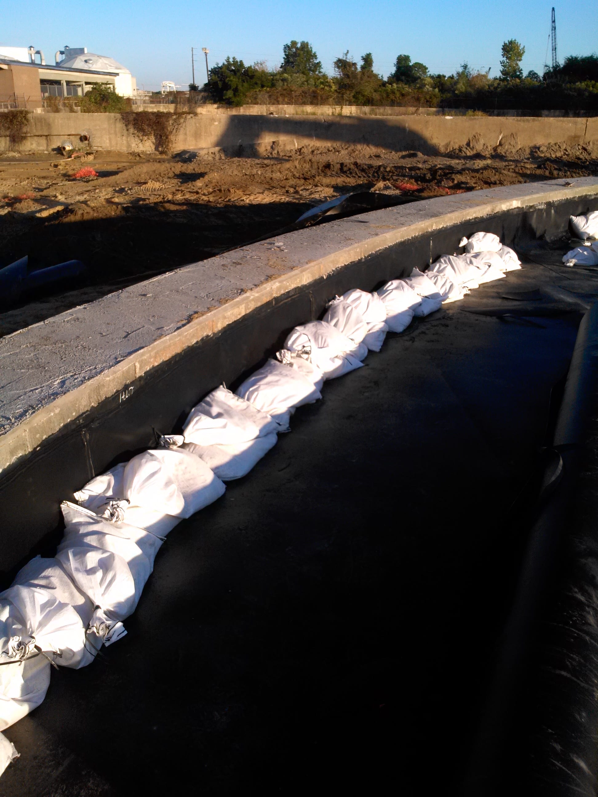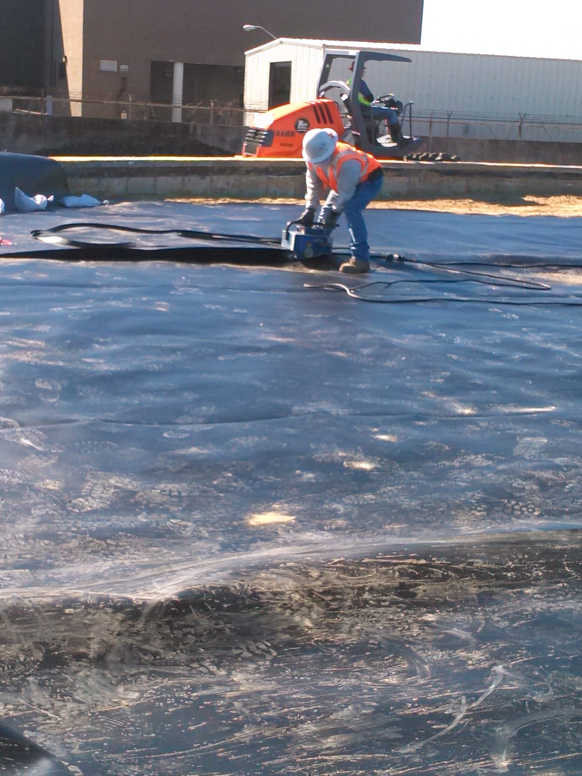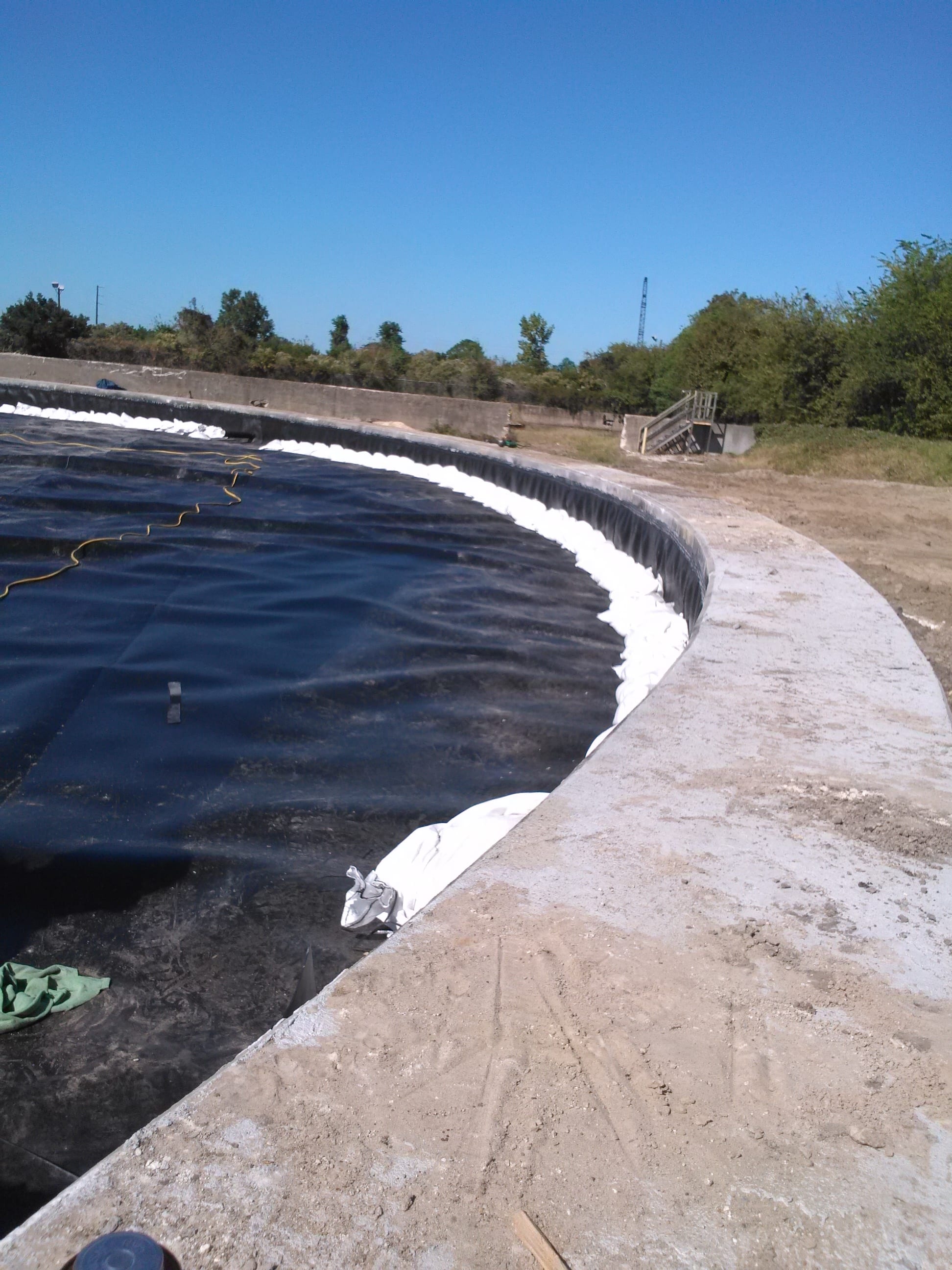 Last week, COMANCO Environmental completed a tank liner containment project in Charleston, SC. COMANCO was contracted to supply and install a smooth 80-mil HDPE geomembrane around a concrete ring wall inside a new tank being constructed. An HDPE embed material was formed in with the ring wall prior to concrete being poured. This enabled the liner to be secured to the structure with an extrusion weld. Approximately, 7,500 SF of liner was installed with 300 LF of extrusion weld. This marked another safe, quality project completed by Max Macedo and crew.