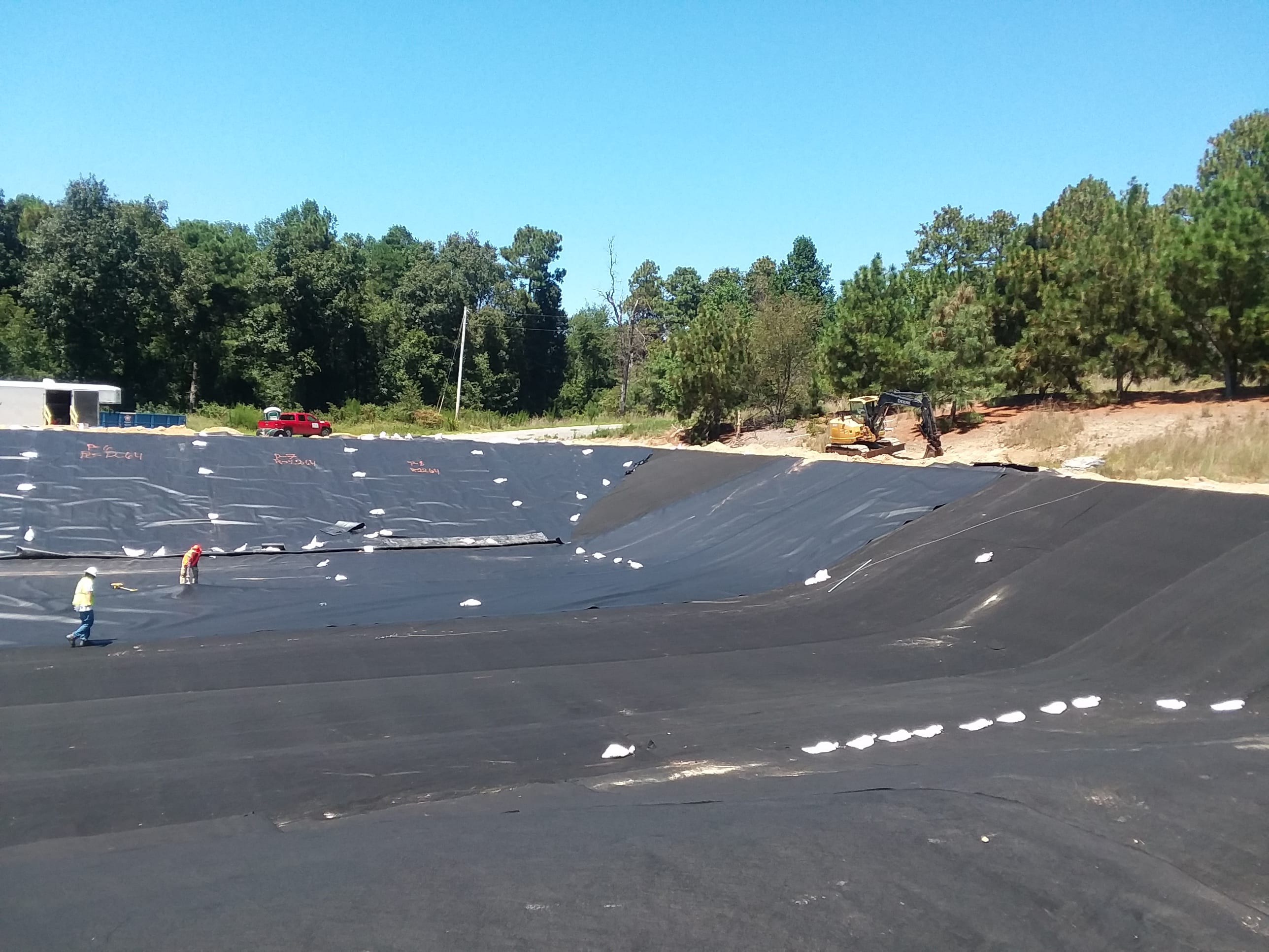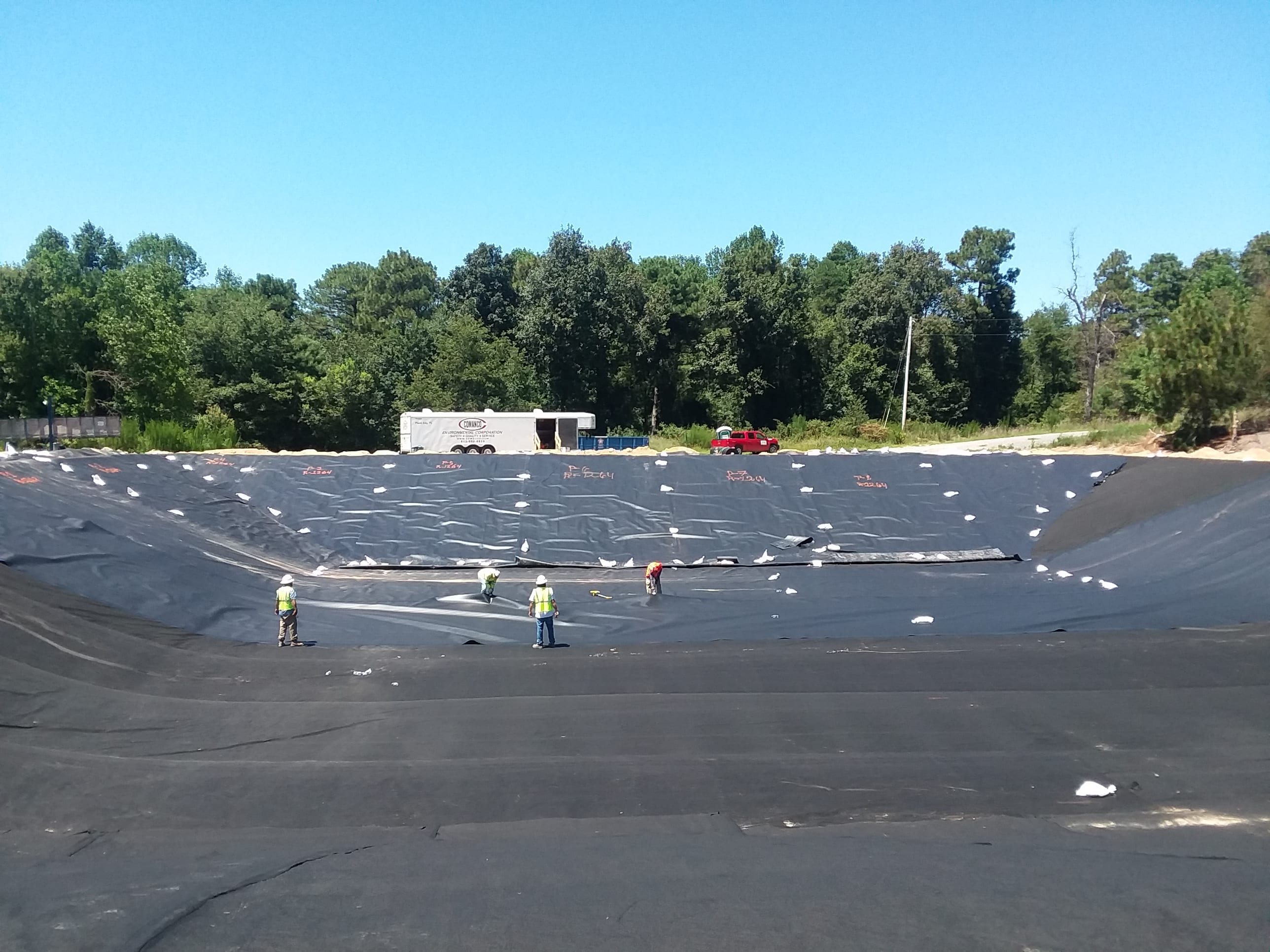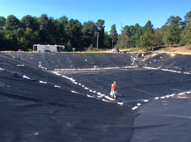 This week, Superintendent Tony Sanchez and his 4-man crew are finishing up an agricultural project in North Carolina. The project consists of lining the 1-acre wastewater lagoon at a hog farm with 12oz geotextile and 60-mil textured HDPE liner. In addition, COMANCO is excavating and backfilling 700 feet of anchor trench. Tony and crew have done a great job keeping safety the number one priority while remaining efficient and providing a quality product.