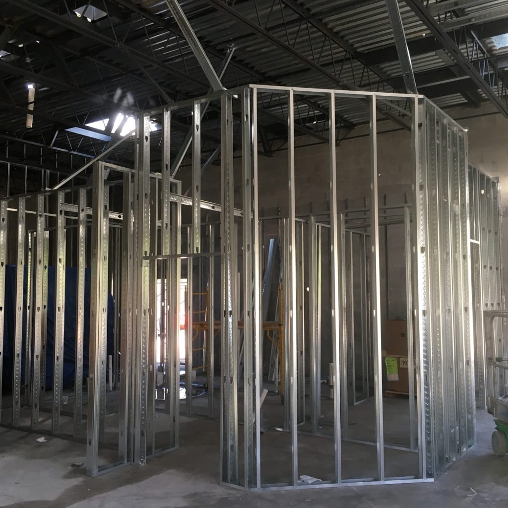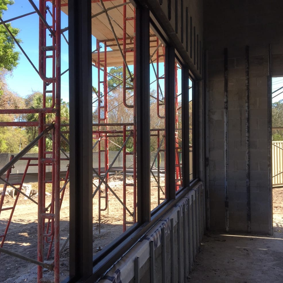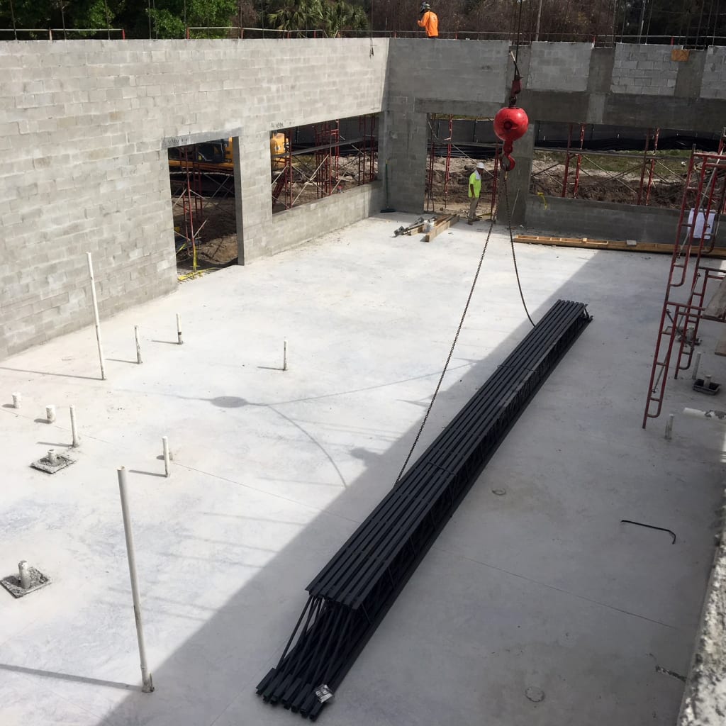 Under the supervision of COMANCO Project Manager Dan McRae, the installation of the steel bar joists and metal roof decking was completed to design in a safe and timely manner. A crane was used to fly the joists in position, allowing welding crews to attach them to embedments in the CMU block. This week, the secondary pour for the structural storefront wall and grouting of remaining CMU block were completed. COMANCO is currently working on the installation of the interior metal framework, plumbing, electrical, storefront windows & framing, and HVAC ducts and curbing. Stay tuned for more progress updates as this restaurant begins to take shape!