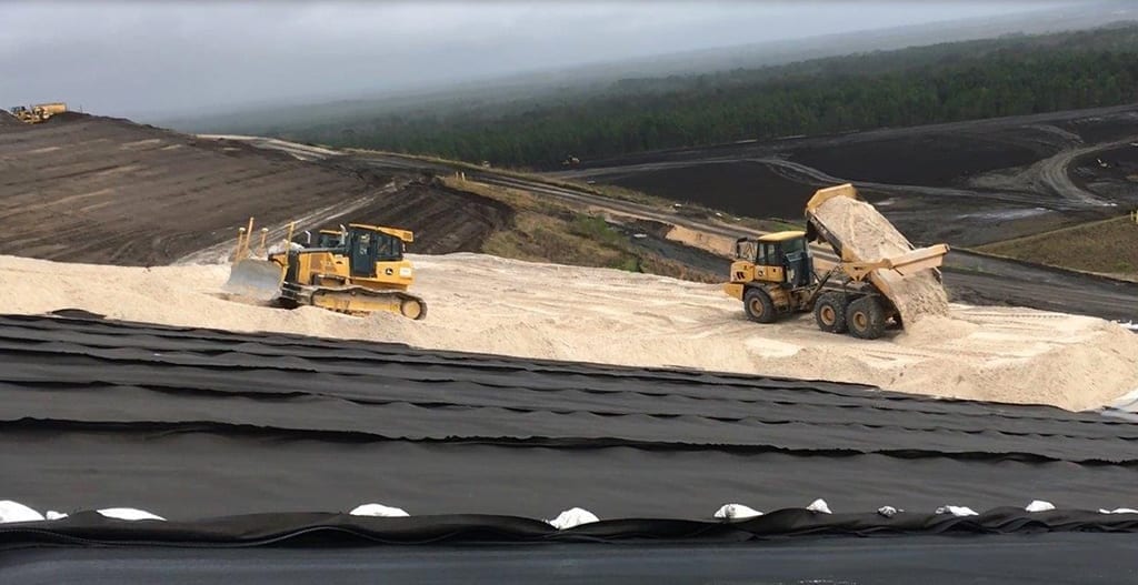 COMANCO 17-man crew Led by Superintendent Nathan Wilfong, makes headway for completion of deploying the liner system for a coal ash landfill project in Palatka, FL. Below photos highlight some of the progress made for installing of 60-mil Double-sided Textured HDPE Geomembrane as well as Double-sided Geocomposite with a protective cover. The crew has done a great job!