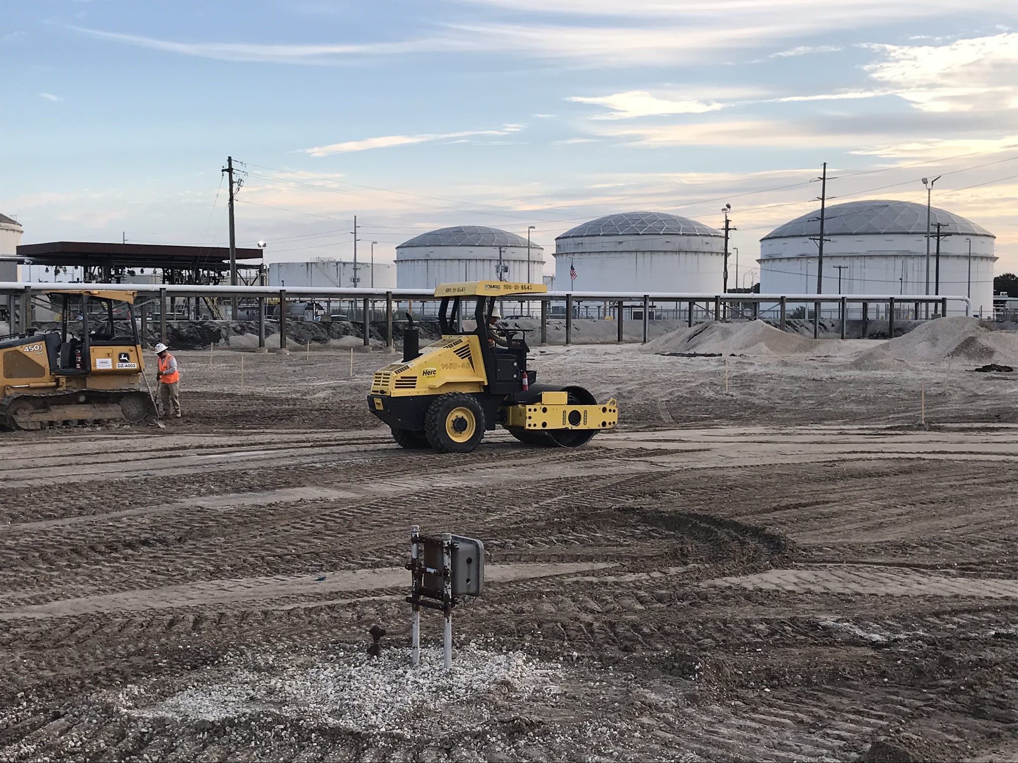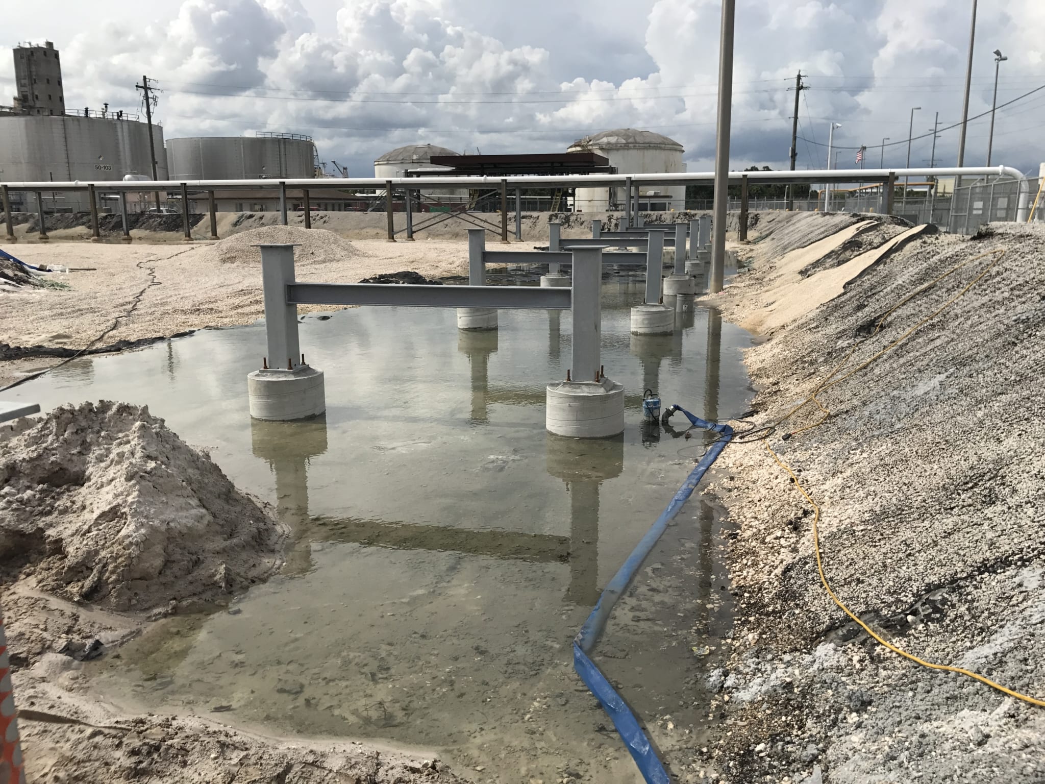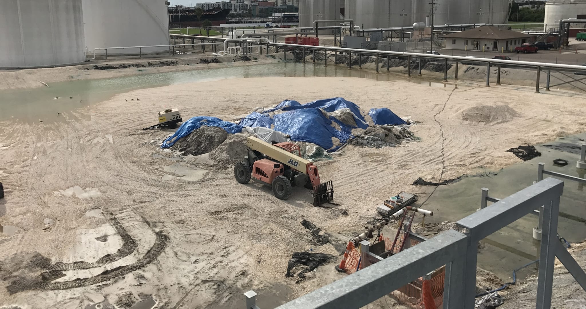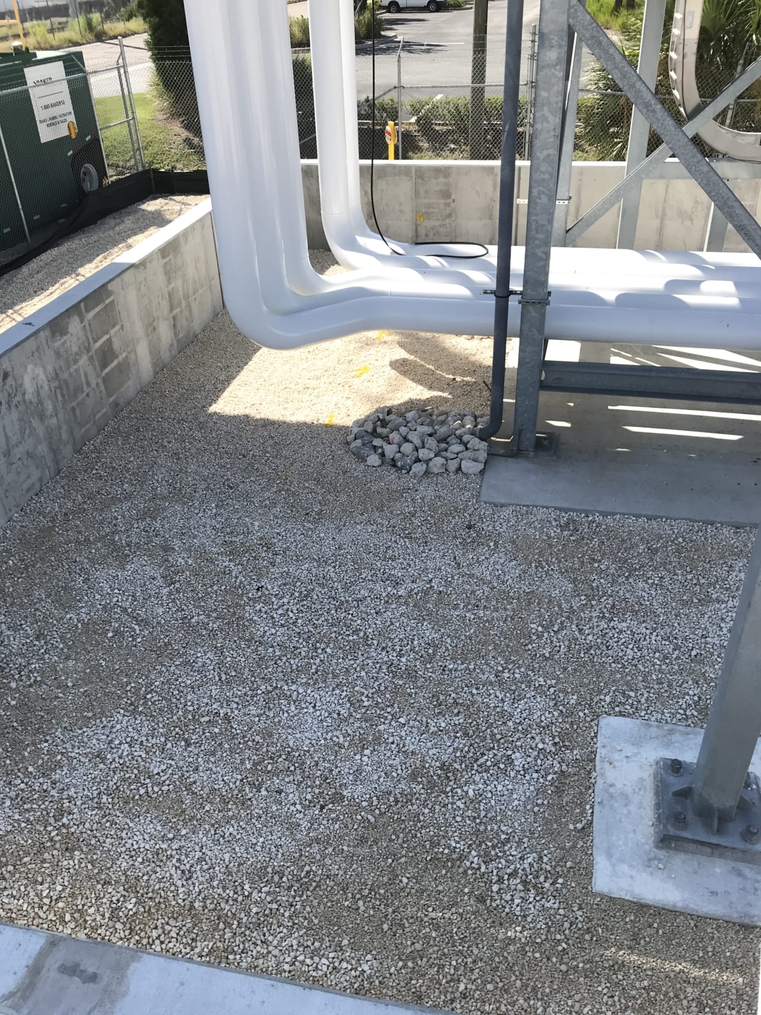 COMANCO is hitting stride and working to wrap up a containment area regrading project located in the Port of Tampa. COMANCO Supervisor Tommy Terry and crew were tasked with re-building, and re-grading containment dikes and an old tank farm after new pipe racks and fuel lines were installed in the area. The re-graded area consists of a GCL layer beneath clean fill, and then a non-woven geotextile and 4” of clean stone to finish it off. The crew is focused on maintaining a safe work environment while providing the client a fantastic final product.