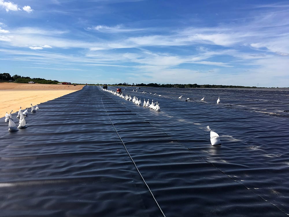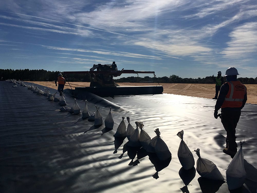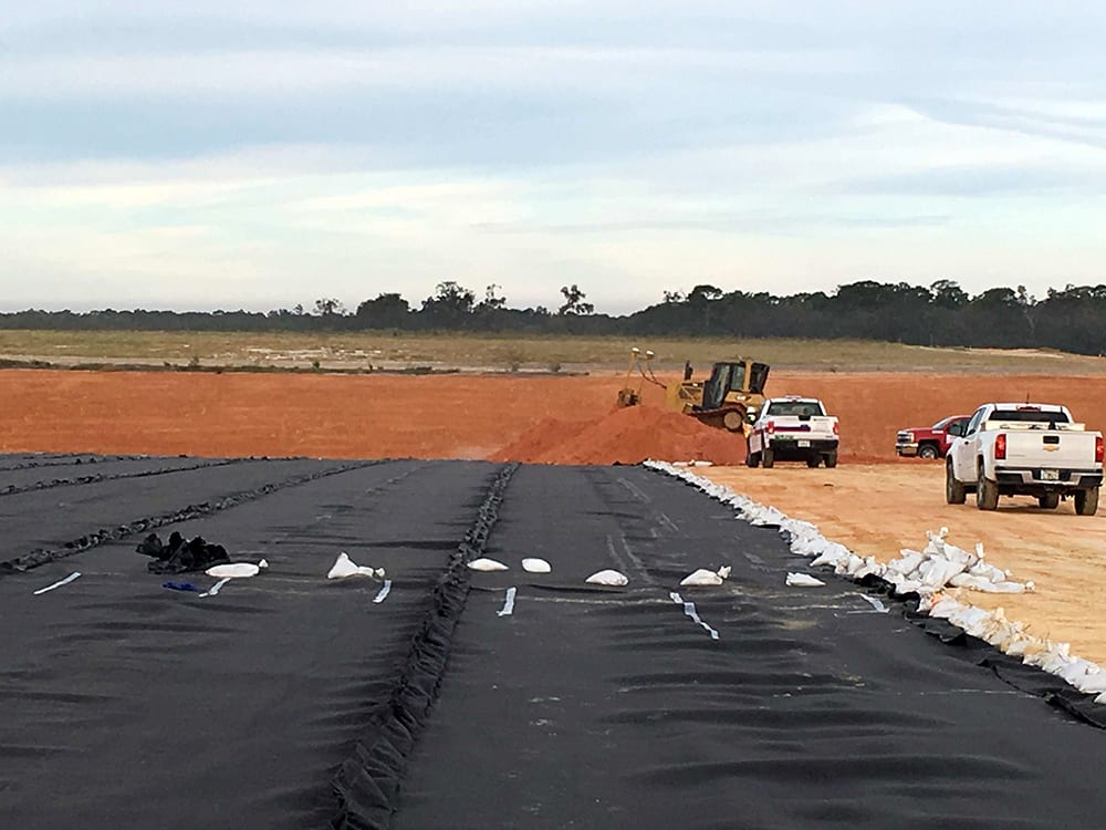 COMANCO Environmental is moving along on a 30-acre C & D Landfill closure project in Plymouth, FL. A 40-mil HDPE geomembrane is being deployed over a prepared sub-grade with a geocomposite drainage layer going over the top. Superintendent, Jorge Barrantes, and a 10-man crew are working diligently and safely while progressing. 2’ of protective cover soil is being placed on top of the liner system to help maintain its integrity.