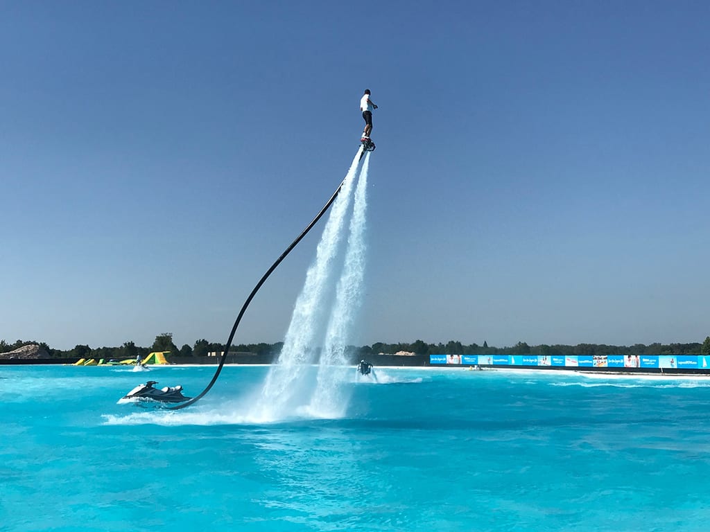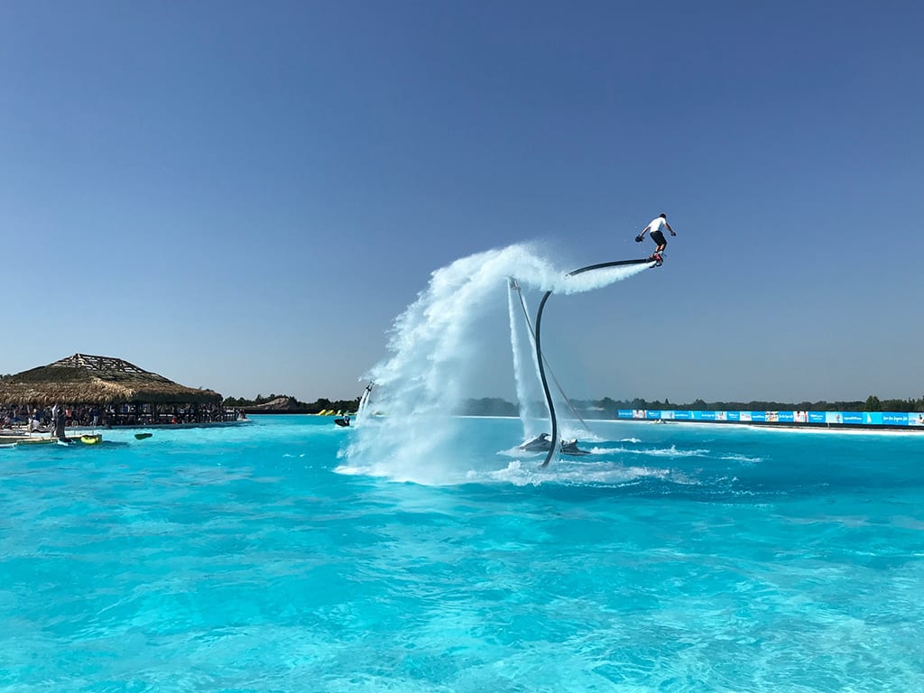 The grand opening featured a tropical-themed event with water ski shows and fly-boarding performances throughout the day and even mermaids in the lagoon. The attendees also enjoyed live music and food trucks.