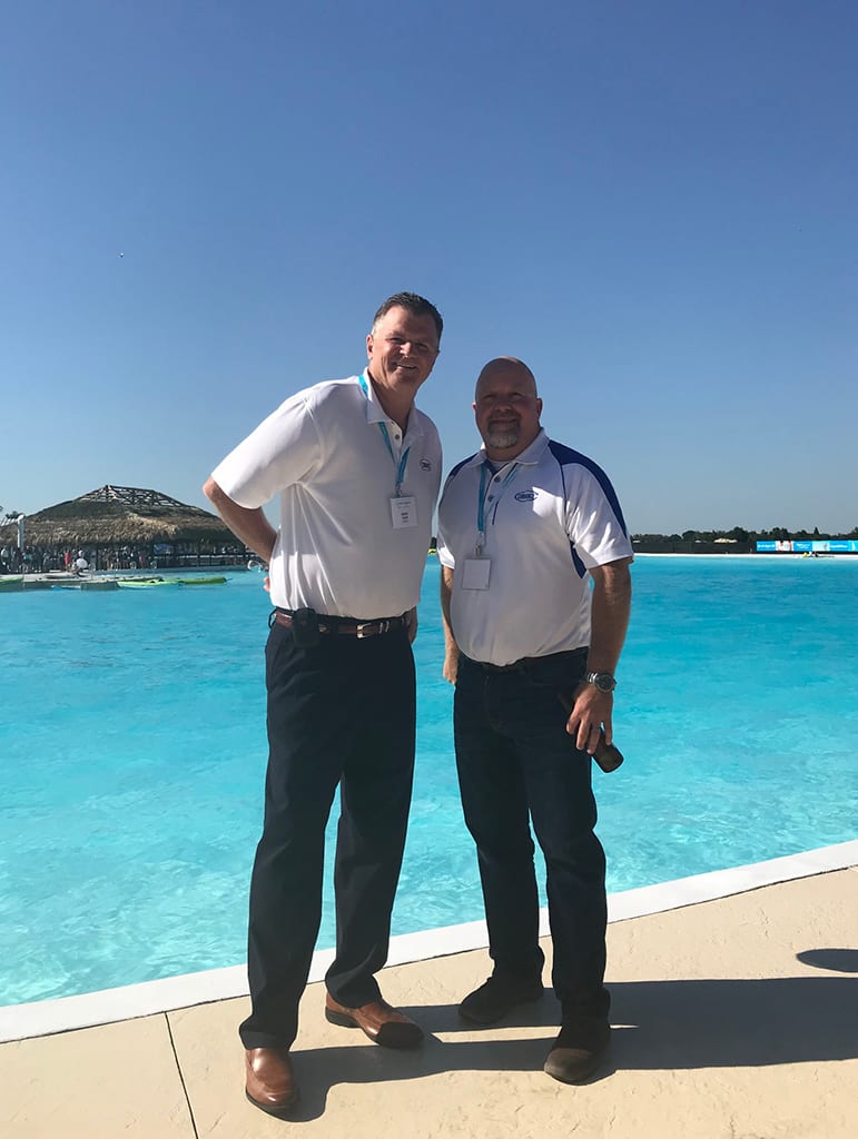 (Pictured in the feature photo from left to right:  VP John Jacobs, Director of Sales David Scherbaty, GSE VP of Sales Mark Harris, VP Christine Thomas, VP Dragan Milosavljevic, Olympic Medalist Michael Phelps, Safety/QA/QC Manager Greg Pignataro, Sr. VP Clayton Lung and President Mark Topp)
