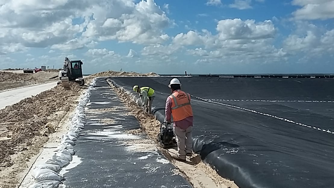 Superintendent Arnulfo Martinez and the COMANCO crew are nearing the halfway point on a liner installation project for a Central Florida Chemical company. All major activities are underway at this point during the project which includes HDPE liner installation, geocomposite gas venting installation, excavation of the anchor trench, and HDPE gas vent outlets. Despite having to prepare the site for Hurricane Matthew, the crew has managed to stay ahead of schedule with no safety incidents. Keep up the excellent work!