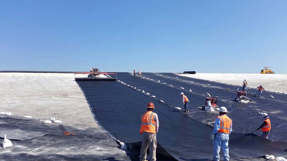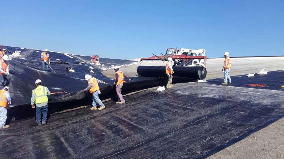 COMANCO is nearing the completion on a 60-acre liner installation project at a Central Florida Chemical Facility. To date, the crew led by Superintendent Gerardo Ruiz has installed nearly 2,400,000SF of 40mil textured HDPE liner and 84,600SF of double sided geocomposite for gas venting. Several pipe boot installations have been completed throughout the duration of this project as well. As the crew comes down to the last few acres, safety remains a key focus point on each employee’s mind. COMANCO looks to complete this project in the coming days providing yet another quality product for its customer.