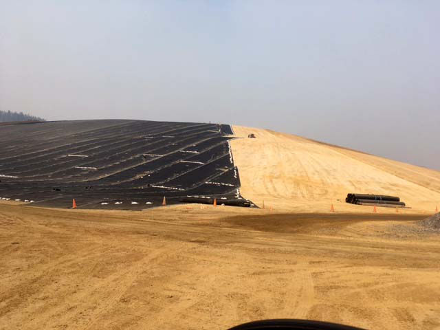 COMANCO Supervisor Pablo Medina and his 10-man crew are nearing the completion of a heap leach pad cap in North Central Idaho. The crew is currently installing 800,000sf of 60mil LLDPE Super GripNet liner. This product features underside spikes for adherence to steep slopes and are simple and economical to install which is required for this project. Keep up the great work guys!