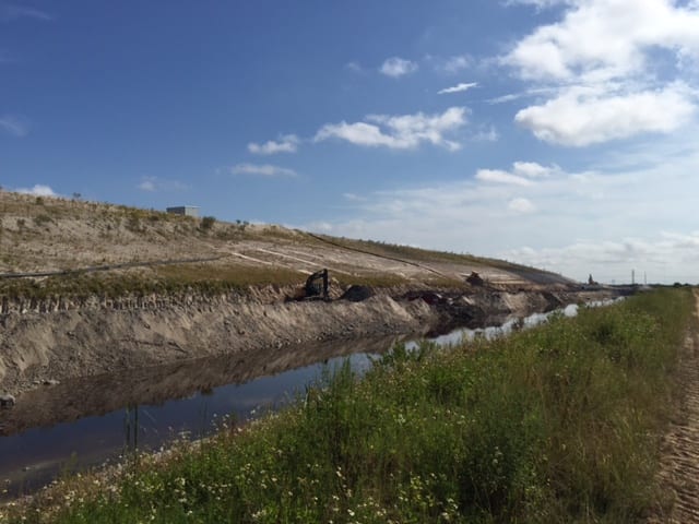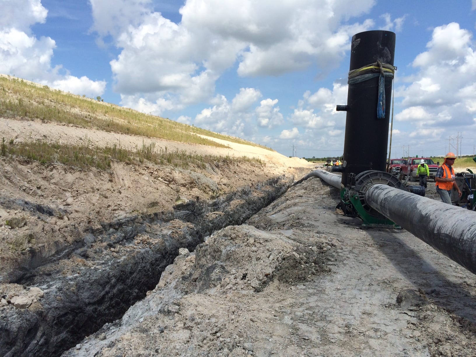 A COMANCO crew has nearly finished installing a 24″ HDPE pipeline around a gyp stack closure on a chemical plant in Central Florida. The pipe runs 12,500 LF and includes (17) 48″ manholes along the pipeline, all of which are installed. The crew will also be wrapping up one of two 12″ corrugated HDPE drain lines that lead into the 24″ pipeline along the slopes. In October, the crew will focus its attention on the upper drain system as well as general grading, pipe demo, and fabriform installation. This crew is being led by Project Superintendent Gary Mitchell, Project Manager Dragan Milosavljevic, Field Engineer Marcus Gress, and Project Engineer Nick Bridges.