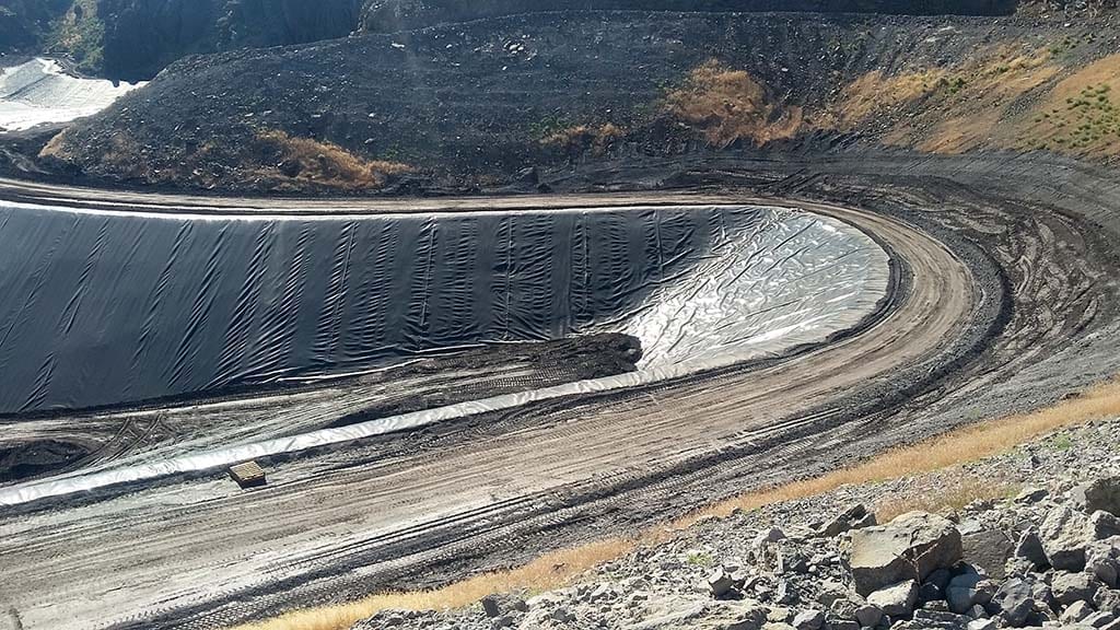 COMANCO Superintendent Martin Calderon and his 10-man liner crew continue installation of 60 mil HDPE liner on a GYP stack expansion in Southeast Idaho. The initial portion of the project has been a series of 2:1 slopes that mirror the contour of the mountain side. Martin and his crew have done an excellent job of installing square panels on the rounded slopes. The work looks great, Thank you guys keep up the great work.