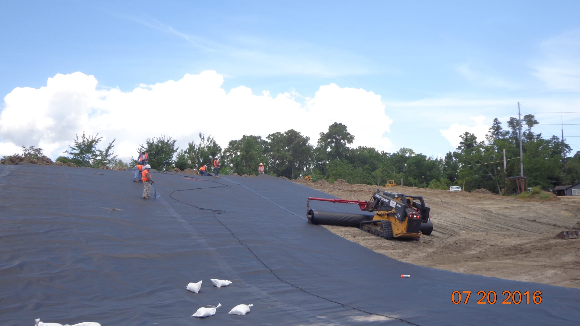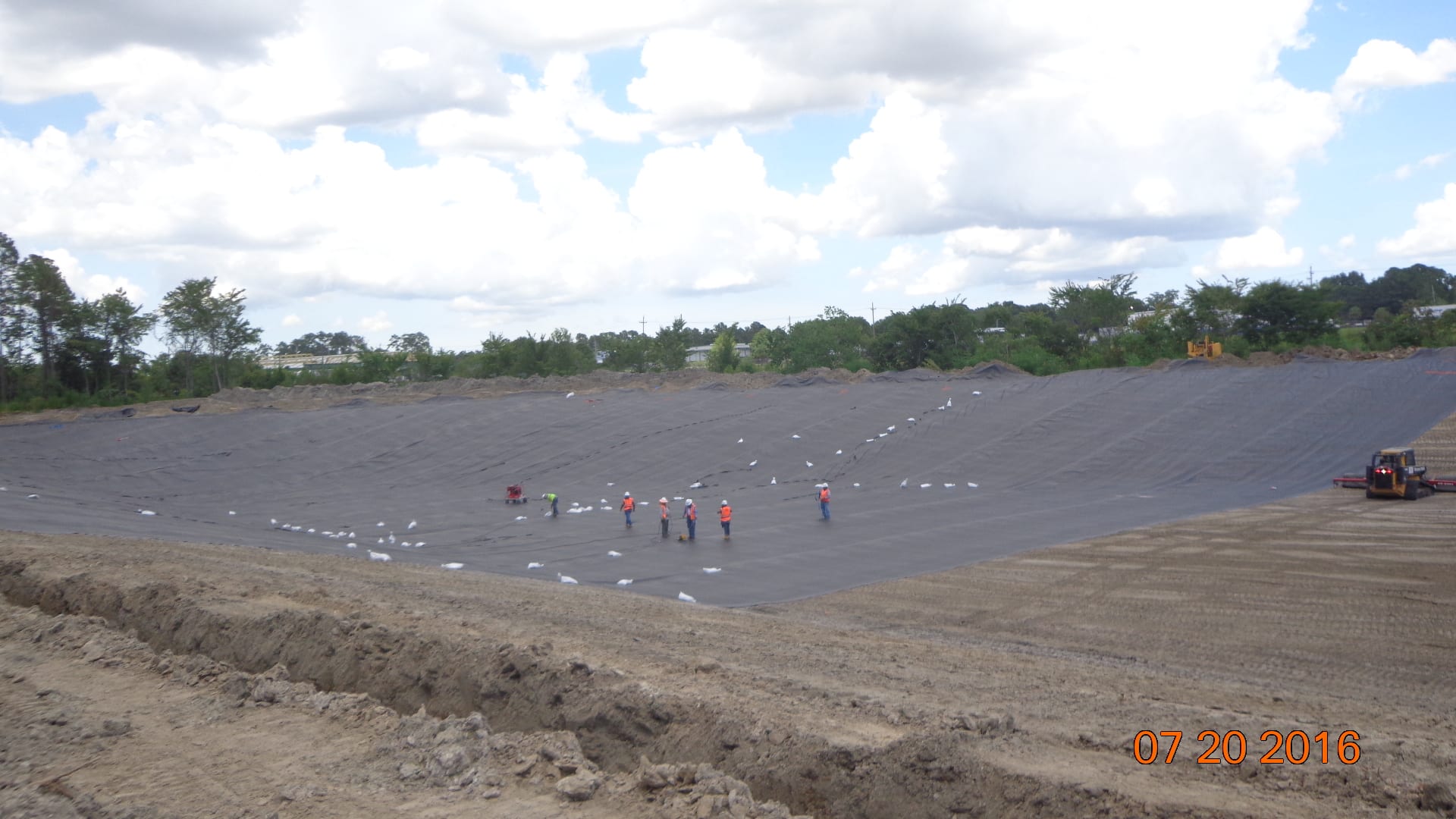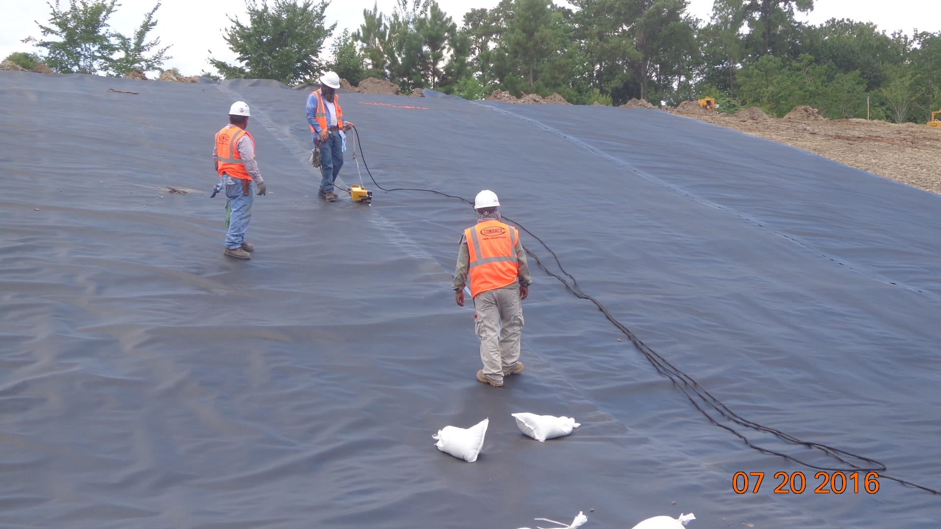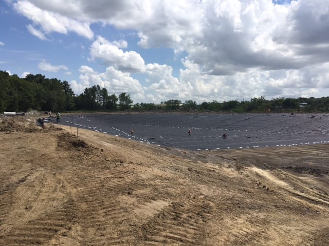 COMANCO Environmental is currently deploying liner on the 1st mobilization of an FDOT Stormwater Pond project in Jacksonville, FL. The 4+ acre pond is being lined with a 30-mil HDPE geomembrane and is being broken out into 2 phases of construction. Superintendent, Jorge Barrantes, and his 7-man crew will install ~100,000 SF of liner in this phase and the remaining 80,000 SF will go down in a few weeks to complete the project. Great job by Jorge and crew working efficiently and keeping Safety #1 by taking breaks and drinking plenty of fluids while dealing with the Summer heat.