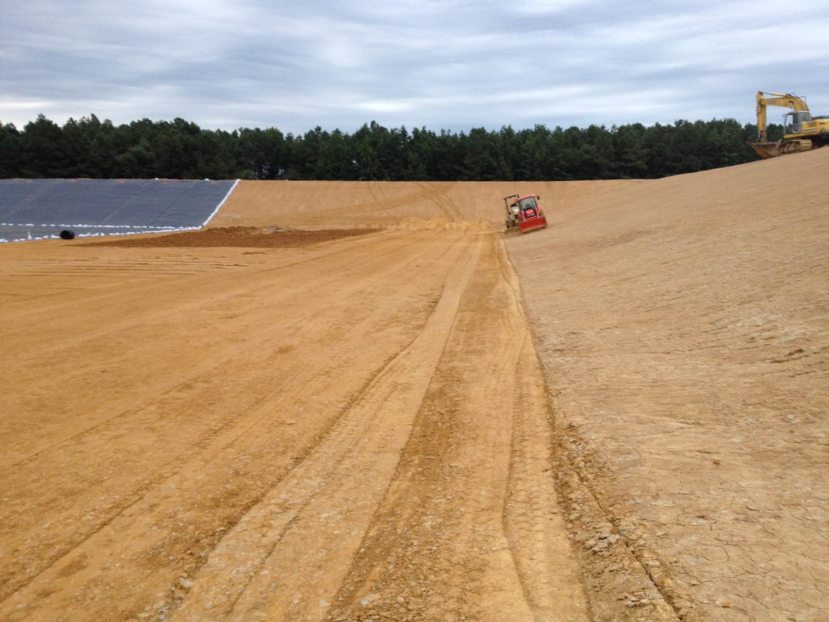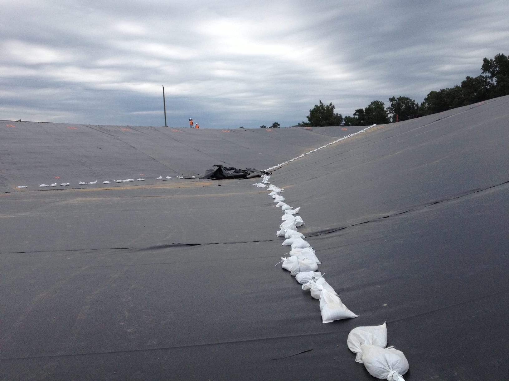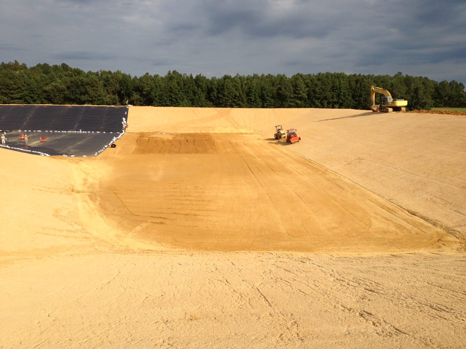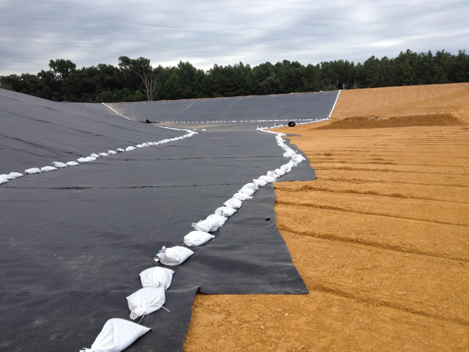 On Monday, August 5th COMANCO Environmental Corporation started a pond liner project in Waverly, Virginia. Murphy Brown LLC hired CEC to supply and install approximately 150,000 SF of 40-mil smooth HDPE geomembrane in a pond at one of their pig farms. Additional items included in the scope of work are textured walkways for access, strips of geocomposite and gas vent flaps for venting. Superintendent, Juan Gomez and his 12-man crew are on schedule to complete this job by the end of the week. Below are some early progress photos of the work.