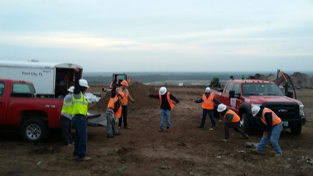 COMANCO Environmental commenced liner deployment on a landfill closure in Jacksonville, FL this week. Over 14 acres of 50-mi Super Gripnet LLDPE geomembrane and 8-oz/sy NW geotextile will be deployed over a prepared sub-grade. Upon arrival to the site, a safety meeting was held with the entire crew to discuss the scope of work and associated tasks required to complete. This was followed by a site walk through to identify other potential hazards & obstacles that could affect work. Good job team on keeping Safety the #1 priority.