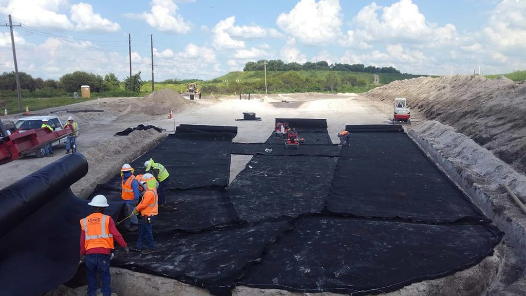 Just this past week, COMANCO wrapped up a liner installation project at a Central Florida chemical facility. The 10-man crew led by Supervisor Gerardo Ruiz safely installed approximately 1.1 acres of 60mil HDPE textured liner along with 25,000SF of geocomposite for gas venting. The crew also completed five pipe boots ranging from 4-inches to 54-inches in diameter. COMANCO was able to complete this project ahead of schedule and under budget while providing another quality product to a valued customer. Job well done!