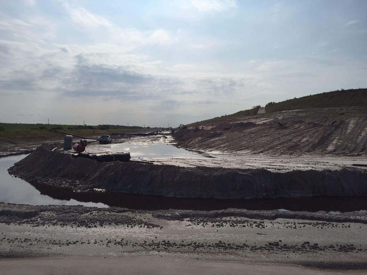 The COMANCO crew working on a gyp stack closure on a chemical plant in Florida has installed the entire lower drain pipe system on the west corner, and they are now making their way east on the north slope. The site has been wet with all the rain that has come through this week, but the crew has continued to make progress.