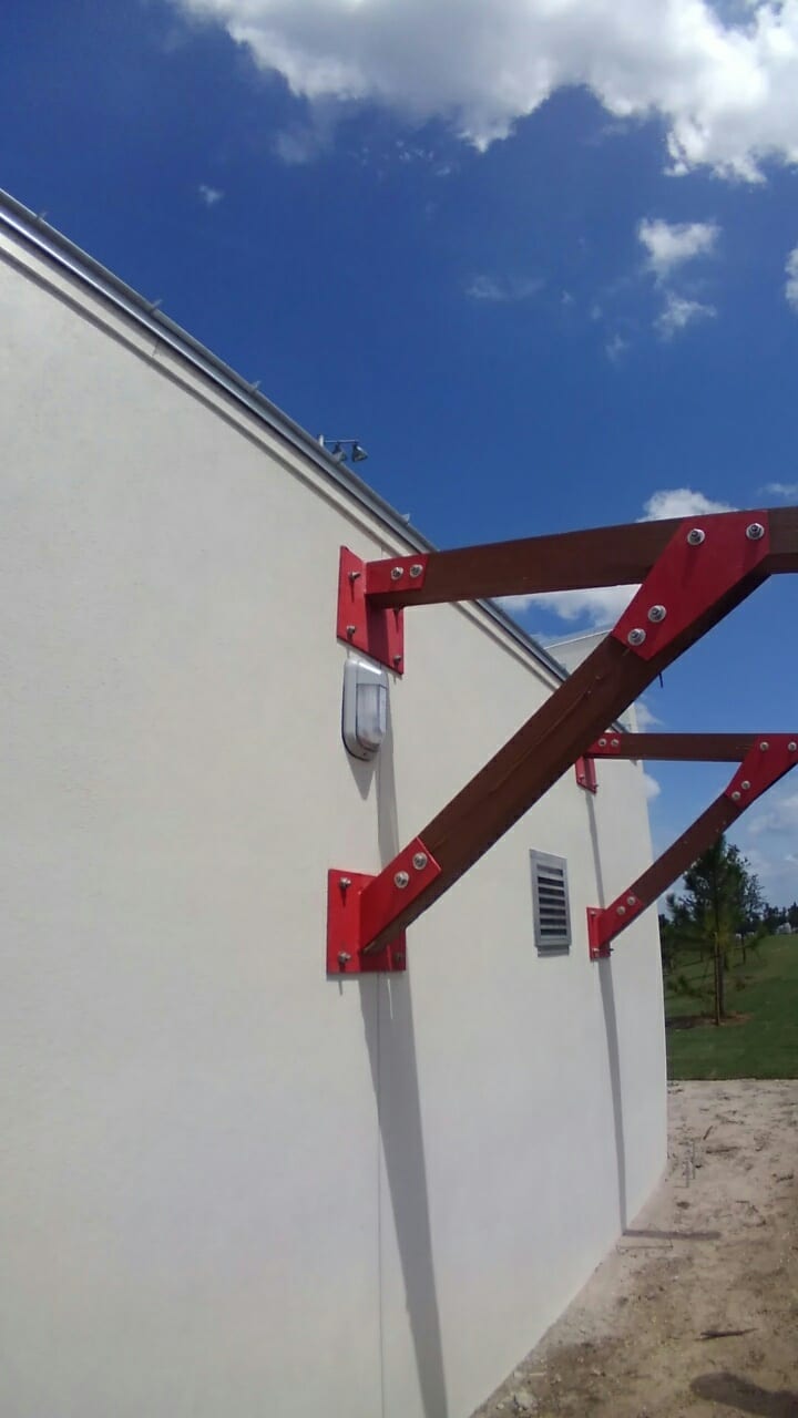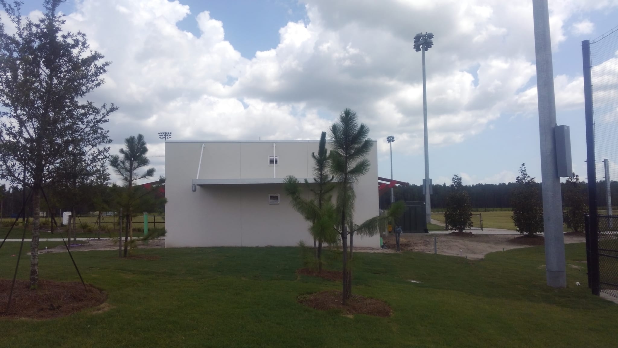 COMANCO is hard at work at Starkey Ranch’s new sports complex this week, as the finish work on the buildings has begun. Superintendent David Haygood crew have started erecting the canopies on the sides of the Concession and Restroom Buildings, while the drywall work wraps up inside. The colors of the wood beams, brackets, and canopies were selected to match the rustic theme of the park as an acknowledgment of the land’s original use as a ranch. Once the drywall is complete, the final paint work will resume, and the fixtures will be installed. Stay tuned for more updates as the buildings at the complex really start to come together in the next several weeks.