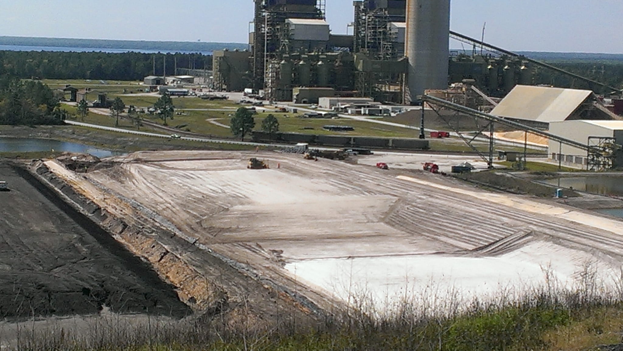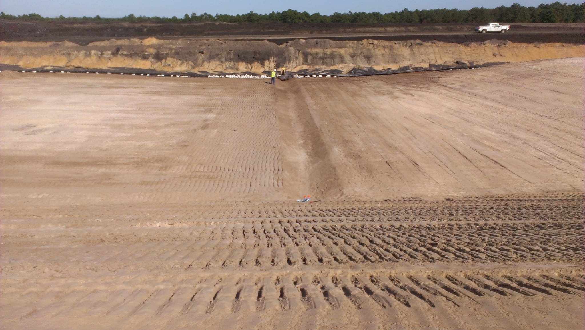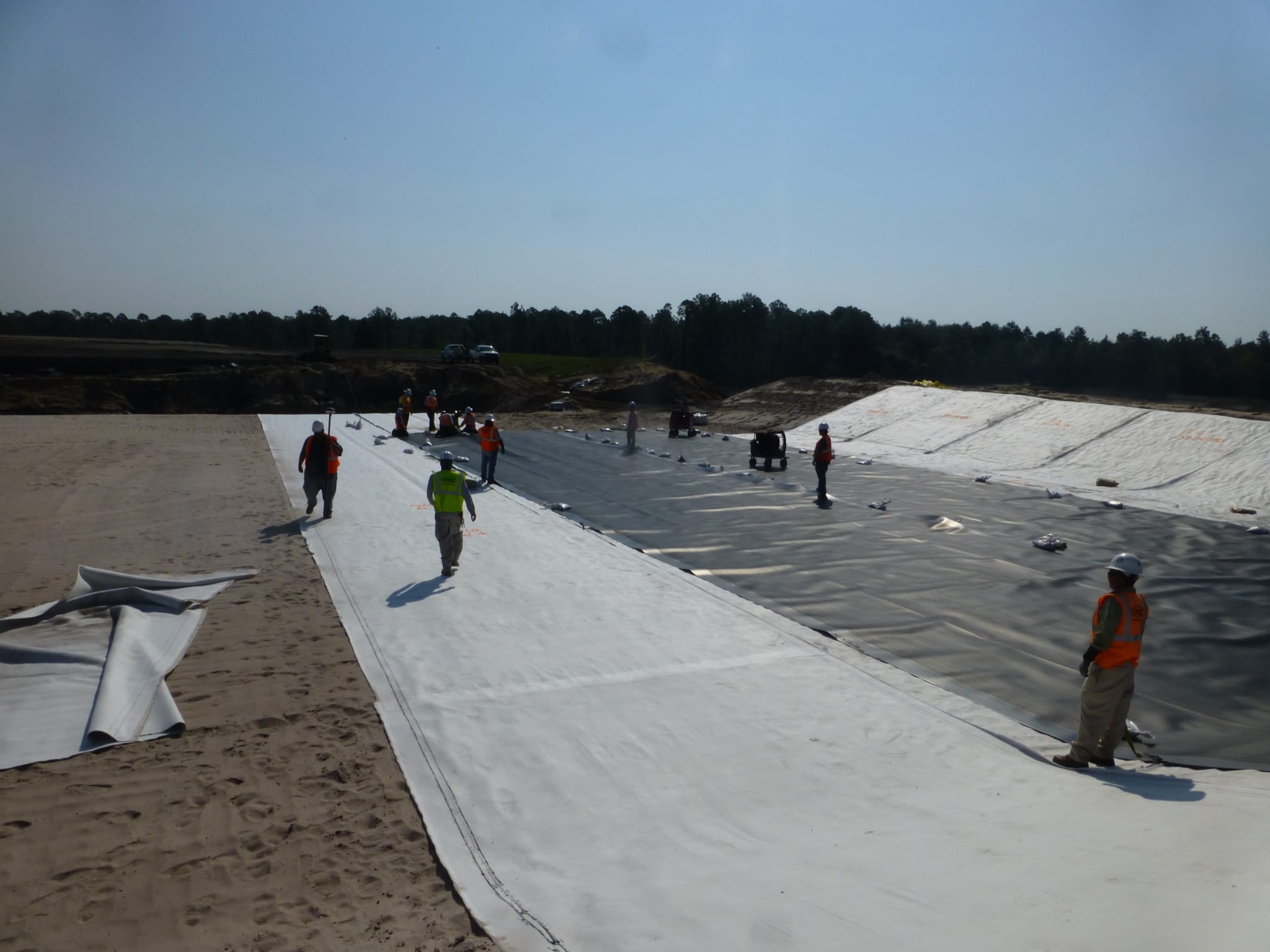 Last week, COMANCO Environmental started the deployment of the GCL and secondary HDPE geomembrane layers for the 5-acre cell expansion to Seminole Electric’s coal ash landfill in Palatka, FL. These are the first two layers of a 5 layer system to be installed. Supervisor, Jorge Gomez, is leading the efforts of the 12-man crew in the field keeping production up while maintaining a safe working environment. During the prior weeks leading up to liner installation, COMANCO hauled approximately 65,000 tons of clean fill material to build the cell up to a design subgrade. Once the geosynthetics are installed, another 17,000 CY of protective cover soil will be imported to create a 2′ protection barrier over the liner. Please see below progress photos of the work leading up to geosynthetics deployment.