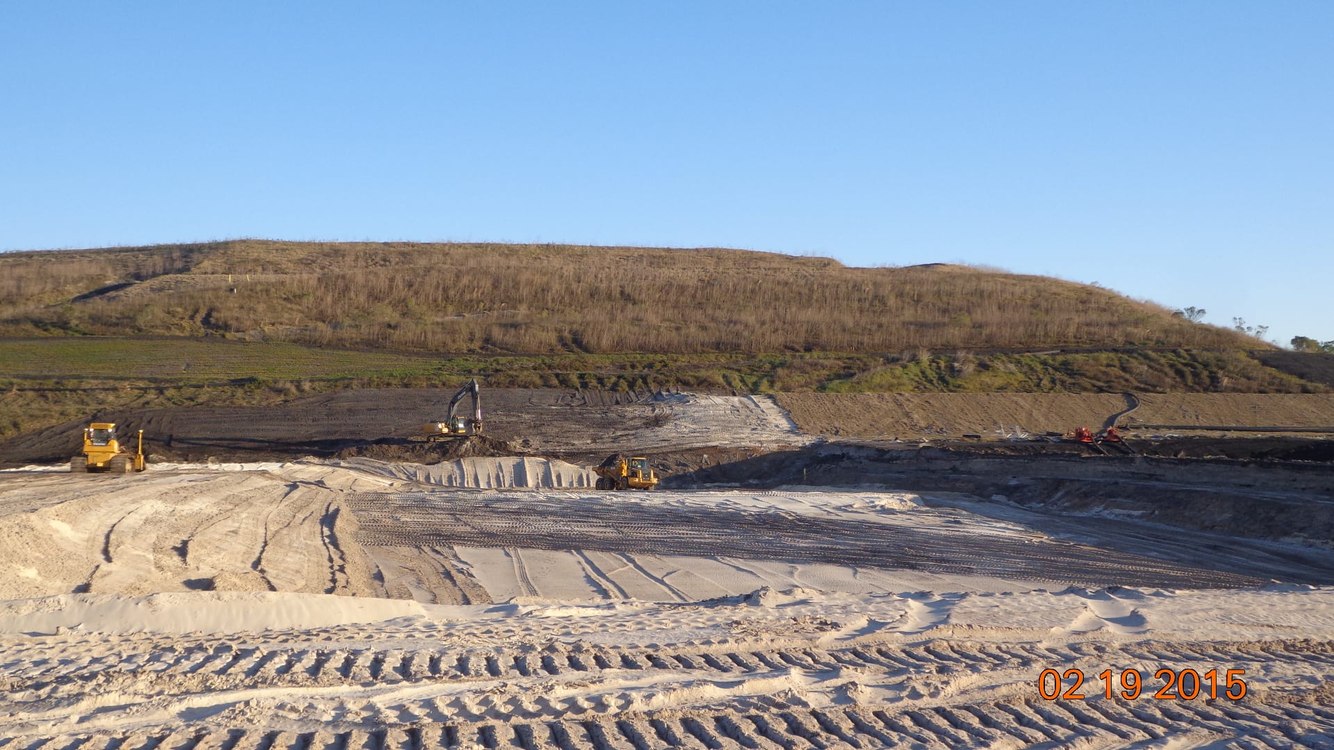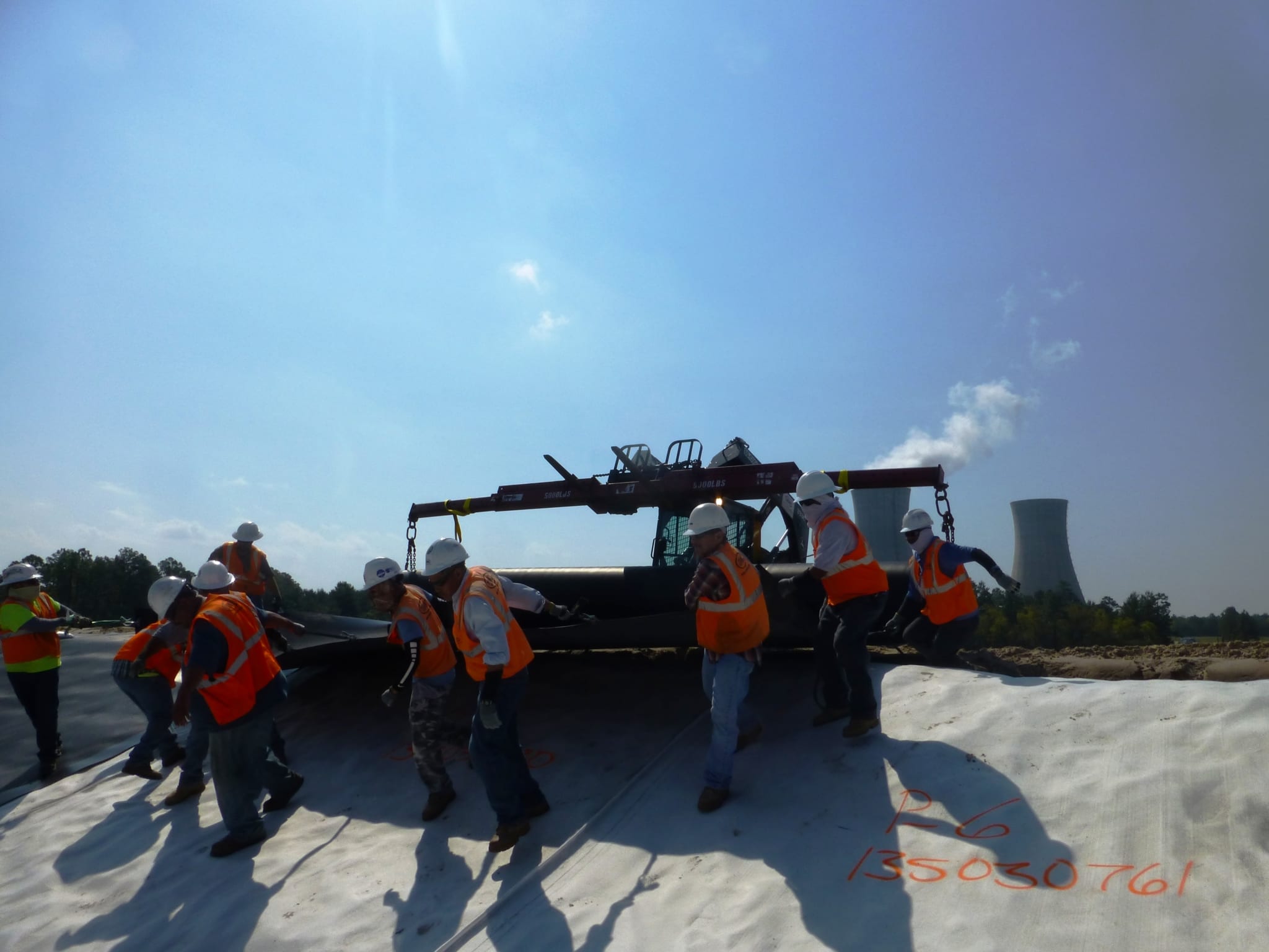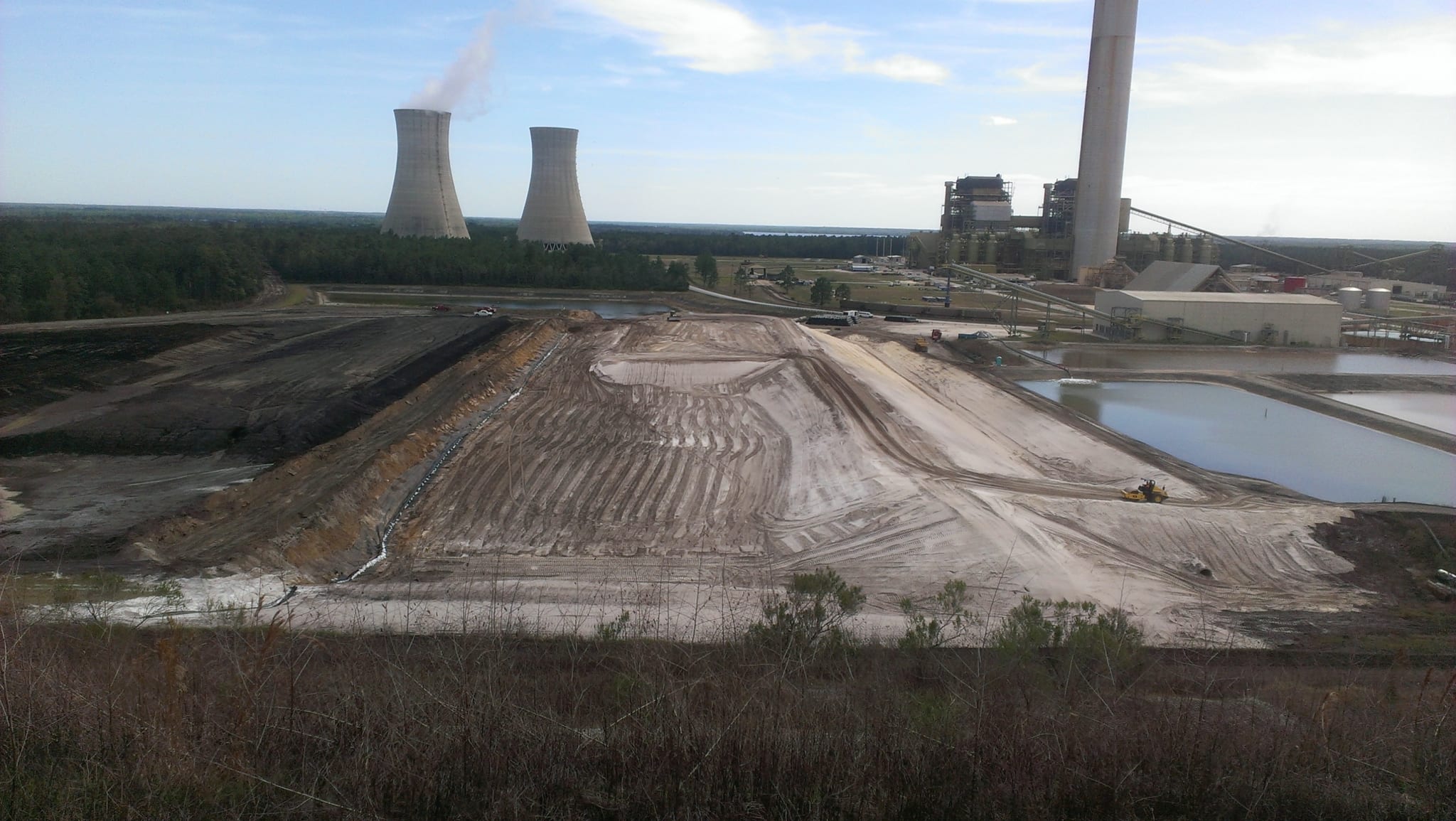 Last week, COMANCO Environmental started the deployment of the GCL and secondary HDPE geomembrane layers for the 5-acre cell expansion to Seminole Electric’s coal ash landfill in Palatka, FL. These are the first two layers of a 5 layer system to be installed. Supervisor, Jorge Gomez, is leading the efforts of the 12-man crew in the field keeping production up while maintaining a safe working environment. During the prior weeks leading up to liner installation, COMANCO hauled approximately 65,000 tons of clean fill material to build the cell up to a design subgrade. Once the geosynthetics are installed, another 17,000 CY of protective cover soil will be imported to create a 2′ protection barrier over the liner. Please see below progress photos of the work leading up to geosynthetics deployment.