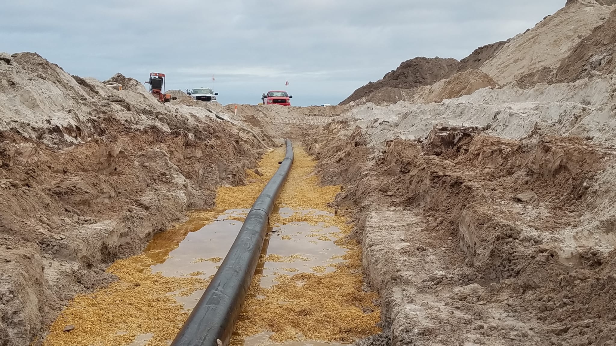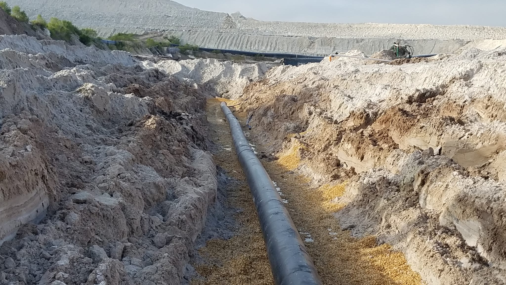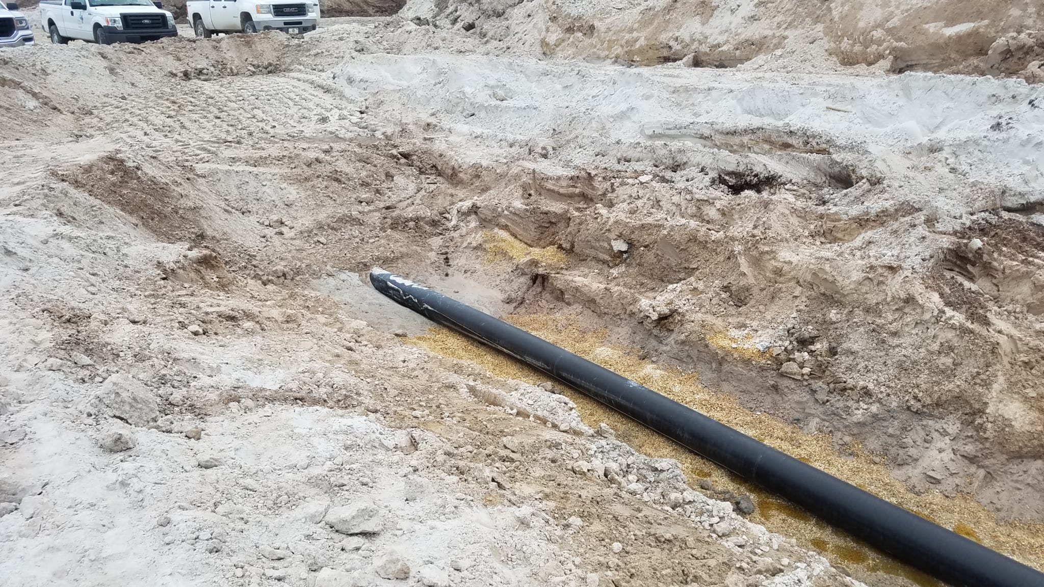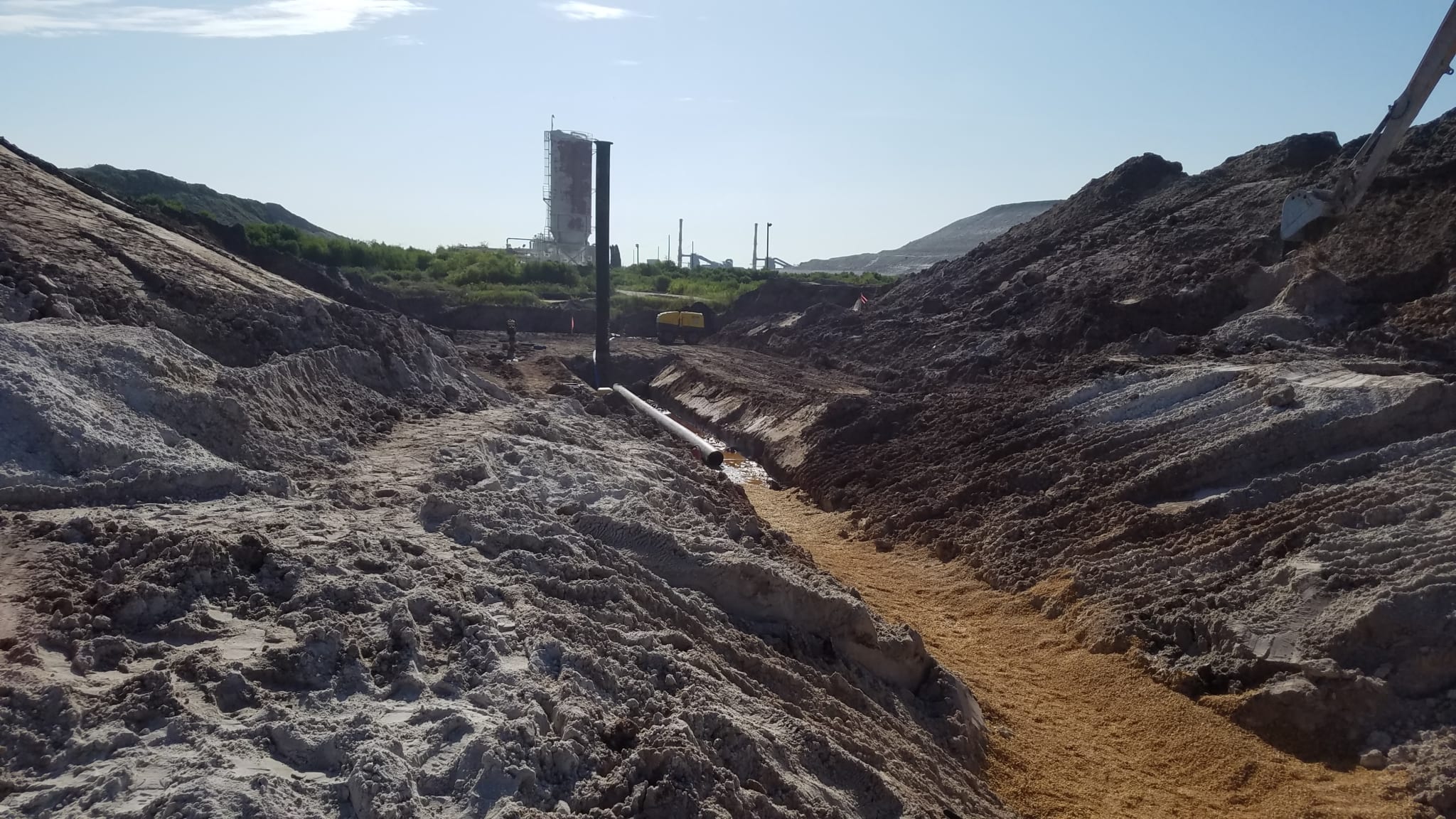 COMANCO Environmental and subcontractor Trader Construction are working together on a North Florida gyp stack expansion project to install a header pipe system for a series of relief wells. Trader Construction is drilling the wells, excavating the trench for the header system, placing a layer of rock to the engineered grade and thickness, and backfilling around the pipe once it has been placed. Foreman Jesus Delgado and a 2 man COMANCO crew are tasked with fusing the 12” HDPE header pipe, installing engineered T’s that allow 3” HDPE pipe to be fused to the 12” header system, and is also fusing the 3” HDPE pipe that connects the wells to the header. Together, the two crews will install over 1600’ of header pipe in the coming weeks.
