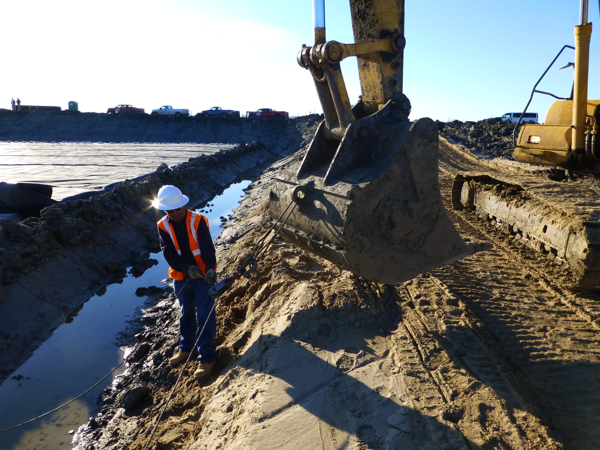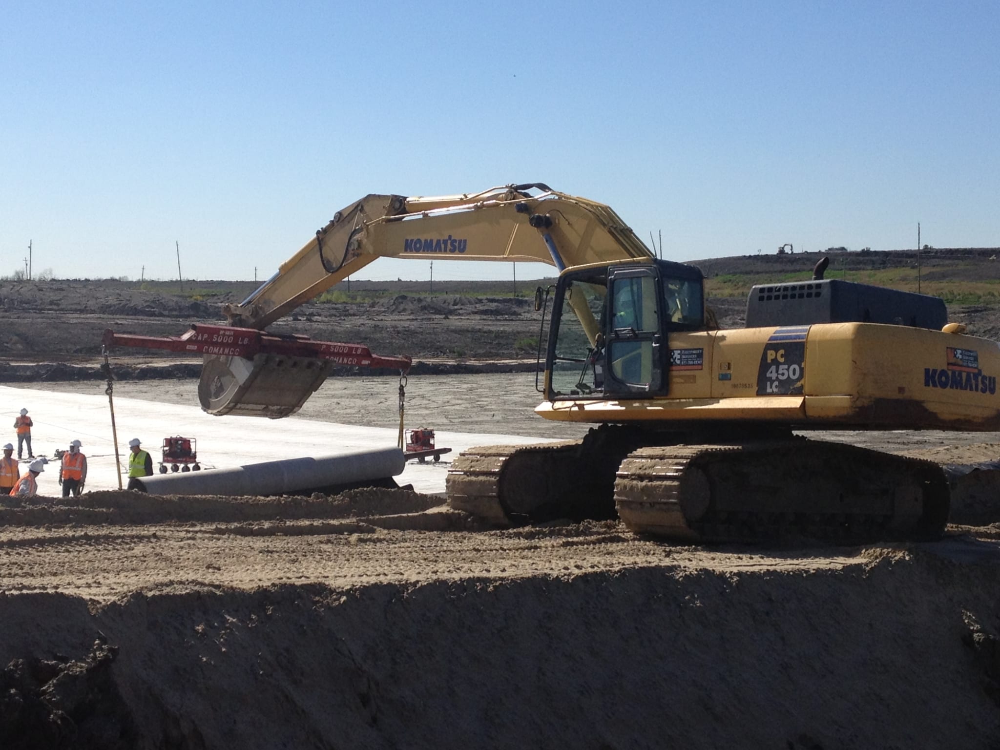 This past March, COMANCO completed the geosynthetics installation for the Cell 21 North expansion of the Jefferson Parish Landfill for IESI. The landfill is located in Westwago, LA (a suburb of New Orleans), and this particular phase of the project included the installation of 60 mil textured HDPE geomembrane, 40 mil Gundseal, 200 mil double-sided geocomposite, and a 40 mil rain flap within the 4-acre cell. The project crew was led by Tony Sanchez (Project Superintendent), David Barnett (Project Manager), and Nick Bridges (Project Engineer). The team was faced with two obstacles on the project: 1) the conditions of the site were wet as the landfill is below sea level, and 2) earthwork operations running adjacent to the work area provided limited maneuverability. However, the COMANCO team planned and worked to find the most efficient means to get the job done, and everything was completed ahead of schedule and with no incidents. The team even impressed others onsite as COMANCO received a letter of recommendation from the site Engineer for future work. This letter, along with some pictures, are shown below.