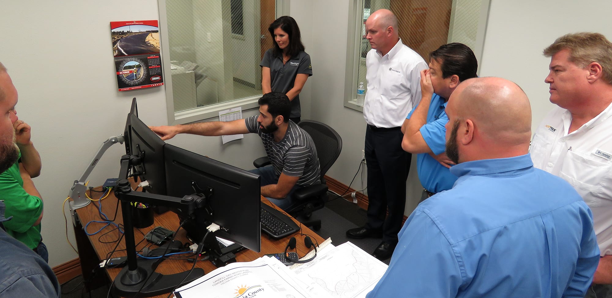 From left to right: COMANCO IT Support Specialist Mark Milford, COMANCO IT Manager Matt DiTarando, Nortrax VP Scott McGuigan, John Deere Director of Worksight & Foresight Jena Holtberg-Benge, Nortrax General Manager Brad Butler, John Deere Director of Global Marketing & Support David Thorne, COMANCO HR & Safety Director Harry Pasquale and COMANCO Fleet Supervisor Tony Cole