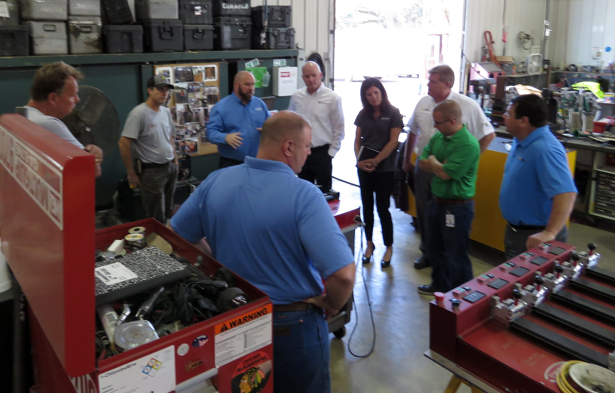 COMANCO HR & Safety Director Harry Pasquale and Fleet Supervisor Tony Cole gave a tour of the COMANCO Fleet Department. COMANCO’s Fleet Technician David Sichtermann gave the group a brief overview of COMANCO’s exclusive 5-station Tensiometer which allows 10 peels and 5 sheer tests which can be run and documented by one person in as quickly as five minutes. This was followed by a brief demonstration of how COMANCO utilizes HCSS Dispatcher to track all the equipment used on COMANCO projects.