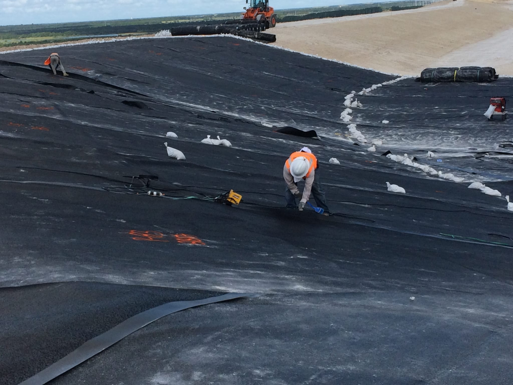 COMANCO is firing on all cylinders at a chemical plant, liner installation project, in Central Florida. Superintendent Arnulfo Martinez and crew have installed nearly 260,000SF of liner on this project so far. Other activities going on around the project include geocomposite venting installation and anchor trench excavation/backfilling. Despite battling the standard afternoon storms here in Florida, COMANCO is working hard stay ahead of schedule and maintain an incident free job-site. Keep up the excellent work guys!