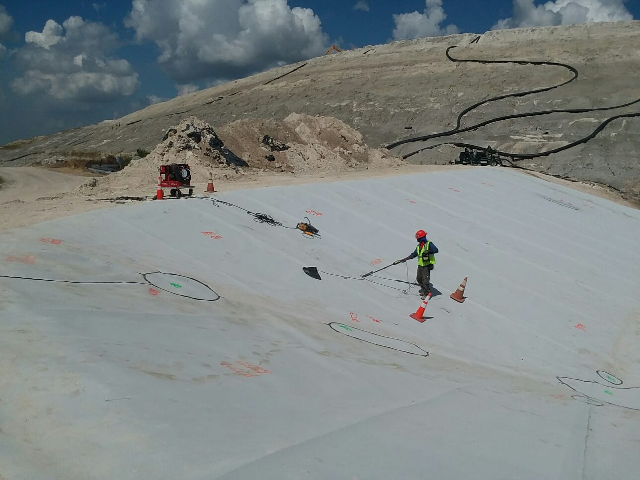 COMANCO was recently able to wrap up a liner installation project at Central Louisiana chemical facility. Superintendent Larry Graham and crew were tasked with installing 20,000SF of GSE White HDPE 80mil Conductive liner along with two pipe boots. COMANCO performed spark testing to ensure no defects were found in the liner system once complete. All work was complete incident providing yet another quality product for a valued customer. EXCELLENT WORK!