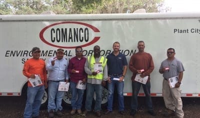 Yesterday, a 3-man COMANCO crew led by Foreman, Michael Bloodworth, were rewarded with their Q2 Safety Cards. This crew has been welding thousands of feet of PolyLock embed for a 14-acre recreational lagoon being built in the St. Johns, FL …