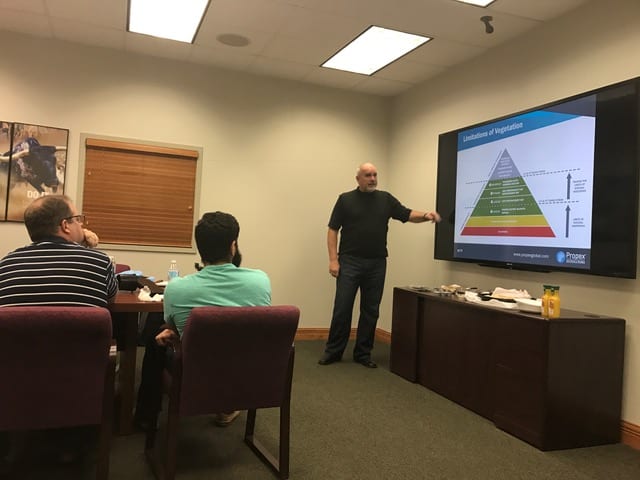Today, Propex Vice President of Engineered Systems Lee Pierce, Director of New Product Development Noah Nichols, and General Manager-GeoSolutions Carlos Sakakihara provided a ‘Breakfast n Learn’ to showcase their products to COMANCO employees. The presentation was very informative and was focused on Propex GeoSolutions products which are used for earth stabilization and erosion control.