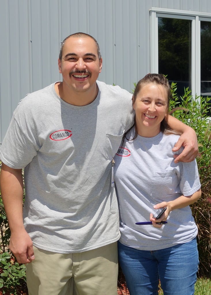 Here are the COMANCO Supervisors celebrating accomplishments of the COMANCO employees: Julie Hughes – Fleet Supervisor, and Arnulfo Martinez- Field Superintendent, present Employee Anniversary certificates and gift cards to the employees they mentor and supervise. Justin Grenke-Liner Equipment Technician, and Manuel Solis-Liner Technician, have worked for COMANCO since 2009. As part of the COMANCO Anniversary and Professional development program, performance reviews are conducted by the Supervisors to mentor the COMANCO employees and help them achieve new professional heights!