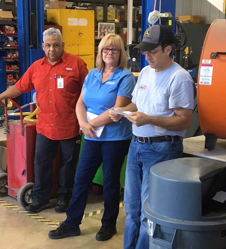 Before this week’s meeting was officially underway, Adan Loza, one of COMANCO’s most recent CDL graduates, took the stage to explain how important it is always to wear a seatbelt, even if only moving equipment a short distance. He also stressed the importance of maintaining three points of contact while getting on and off equipment and vehicles.